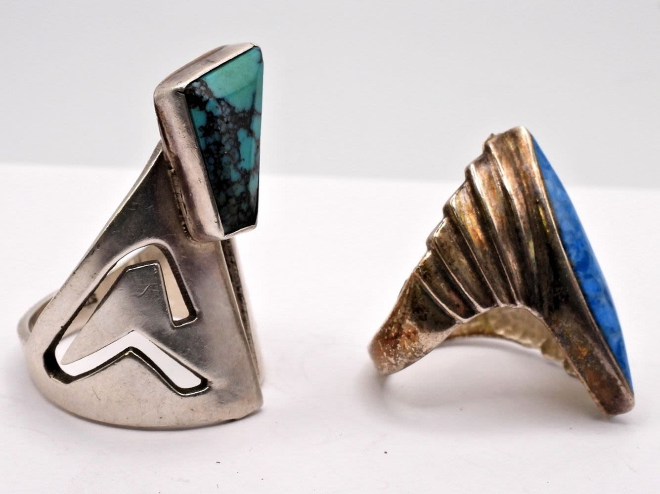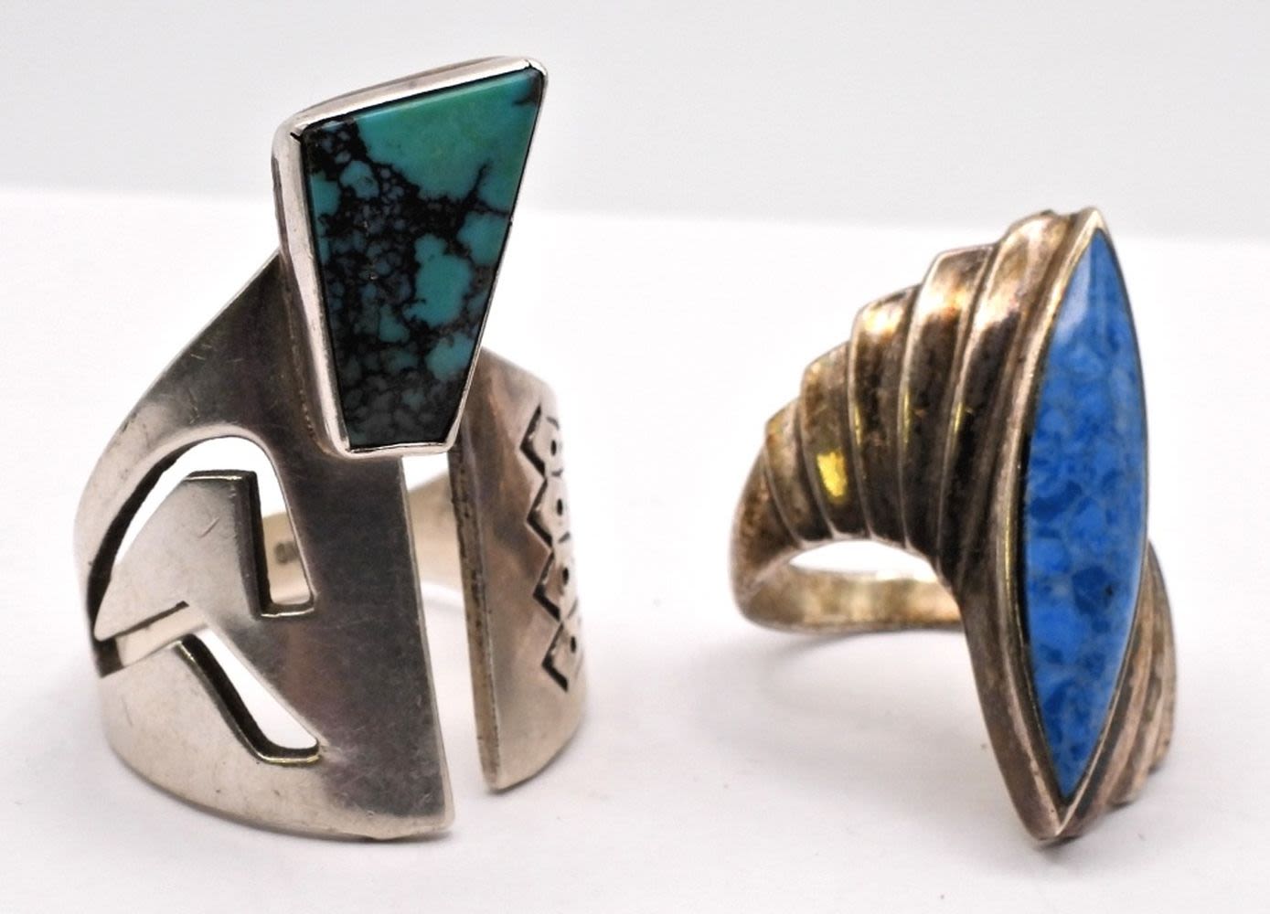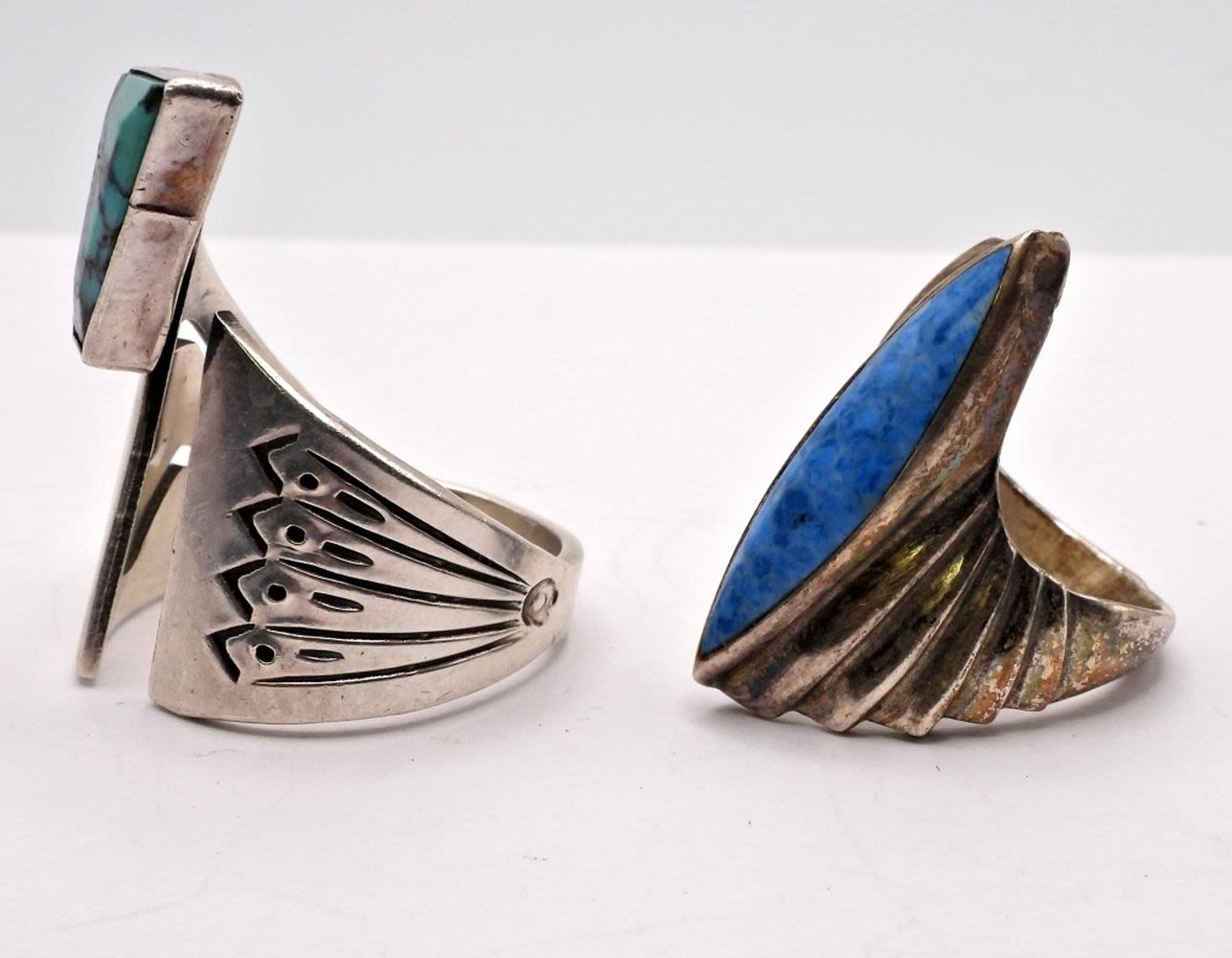 plus BLUE TURQUOISE STERLING RING – SIZES 7 to ADJUSTABLE (11 dwt)