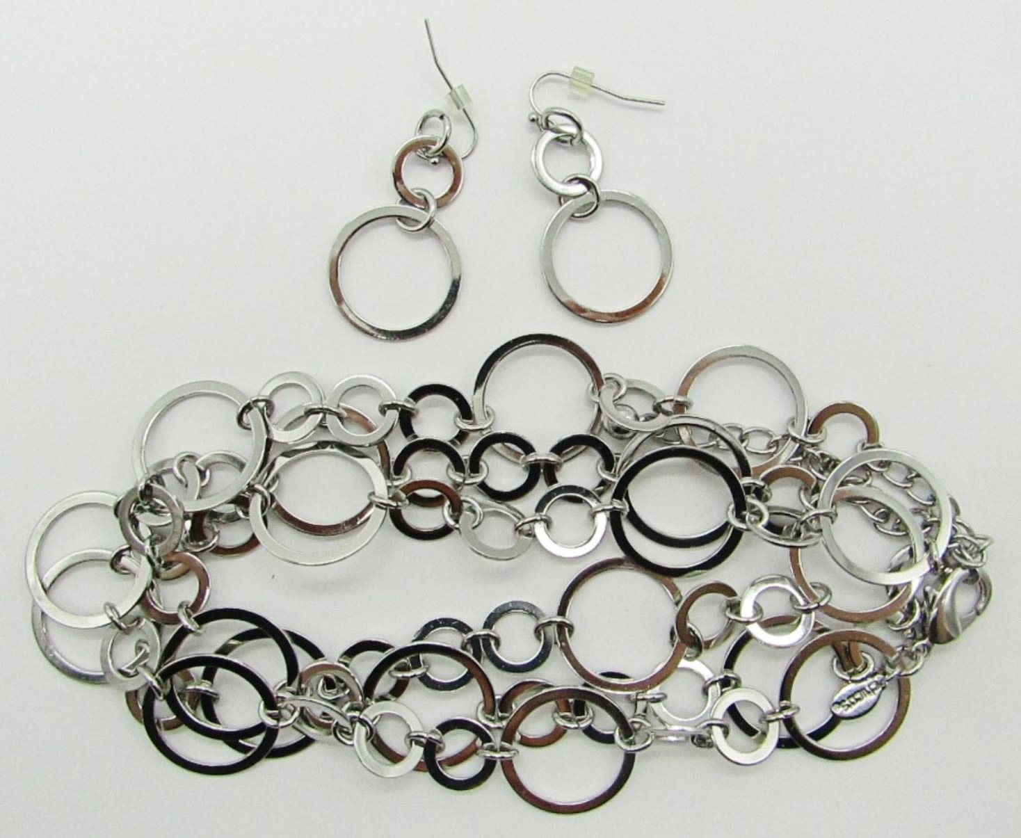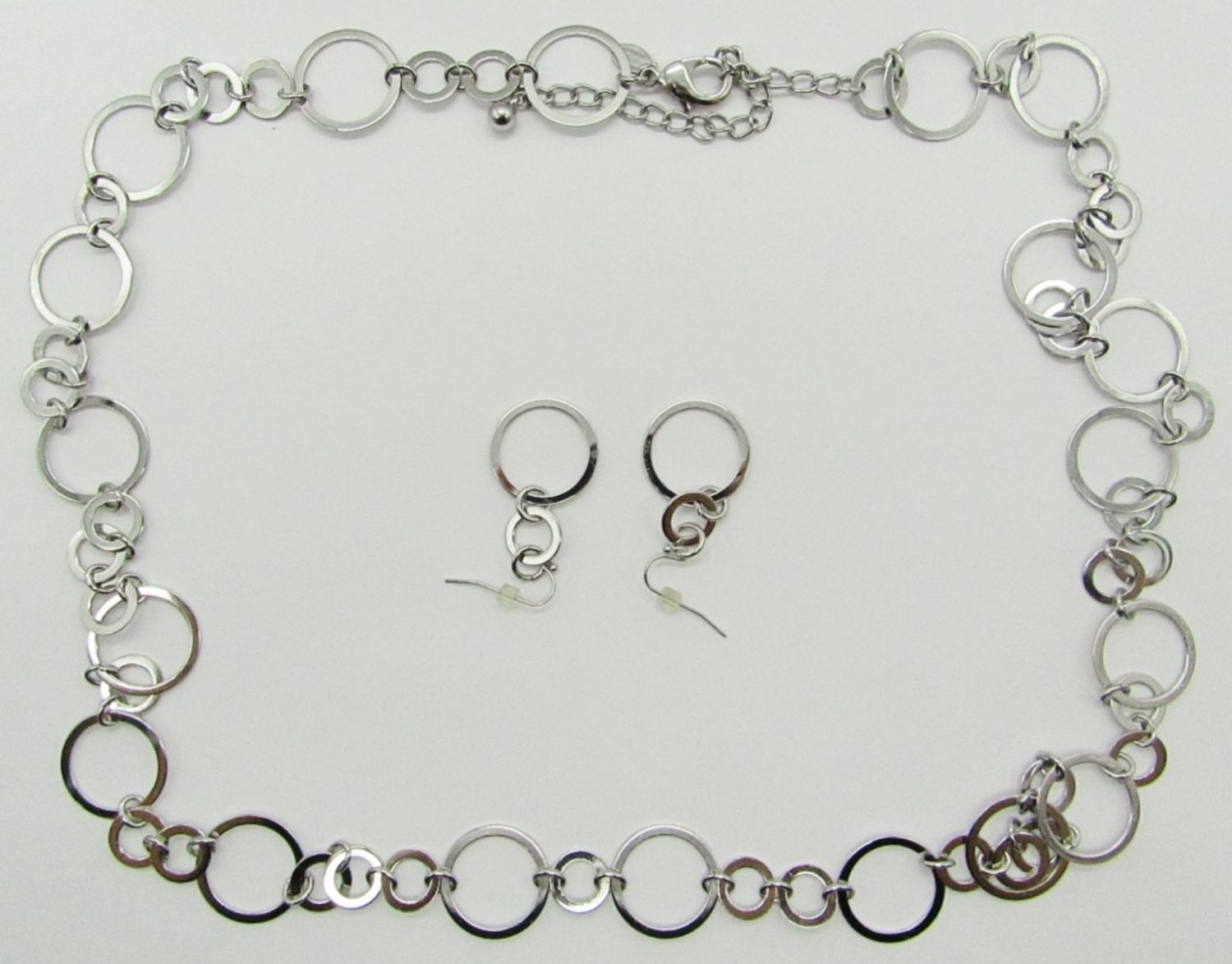 SILVER TONED CIRCLES 40″ NECKLACE & PIERCED DANGLE EARRING
