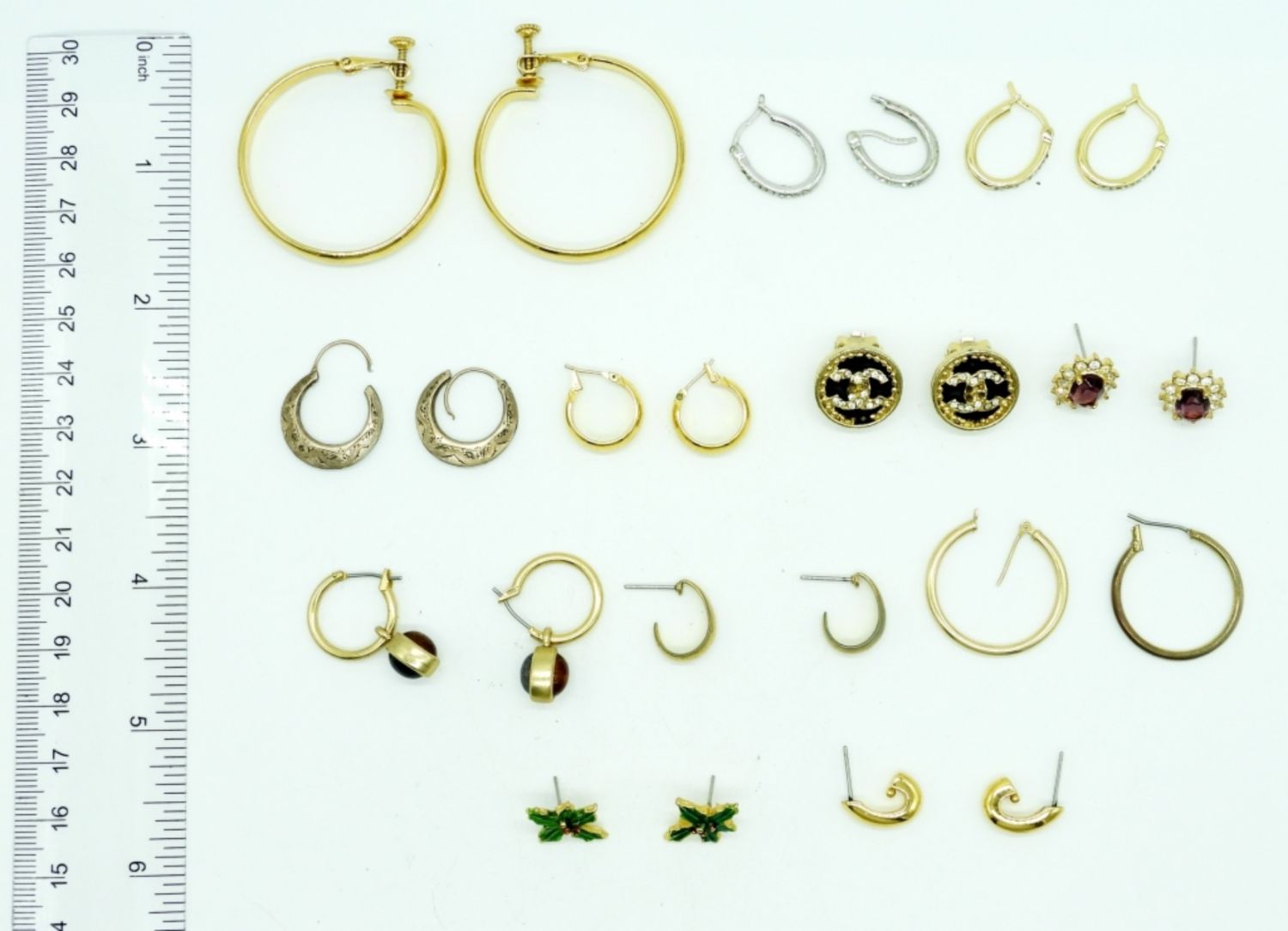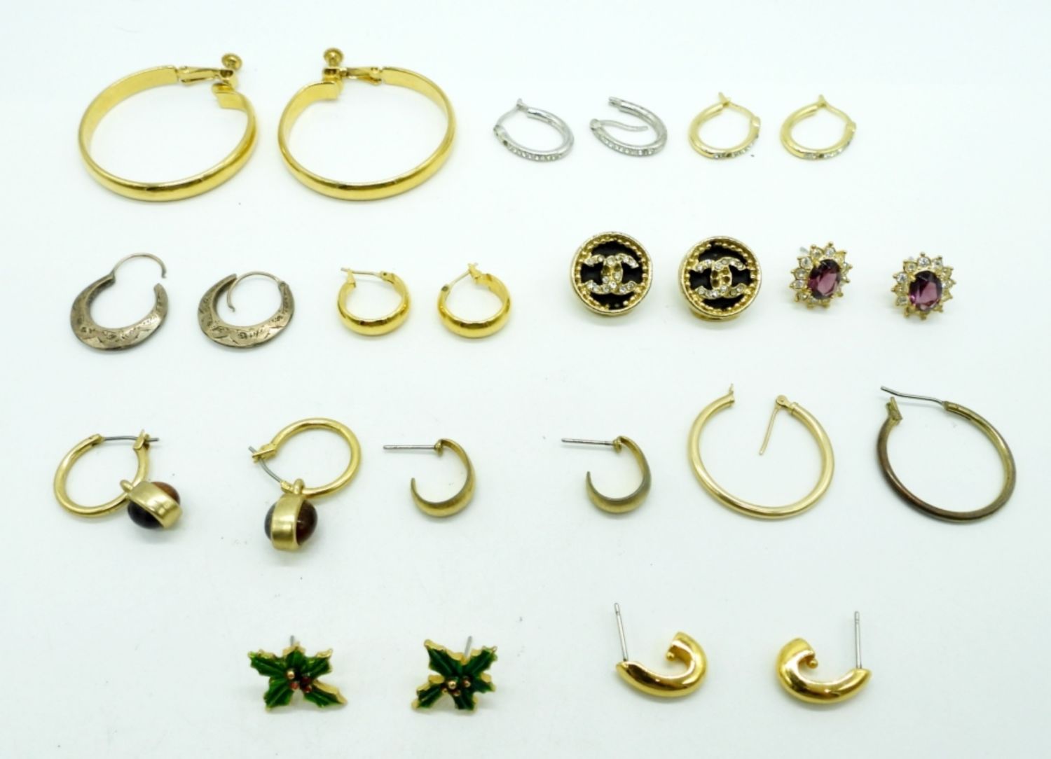 ALL DIFFERENT – (1) PAIR IS STAMPED “JOAN RIVERS” – SILVER & GOLD TONE, HOOPS, GEMSTONES & MORE