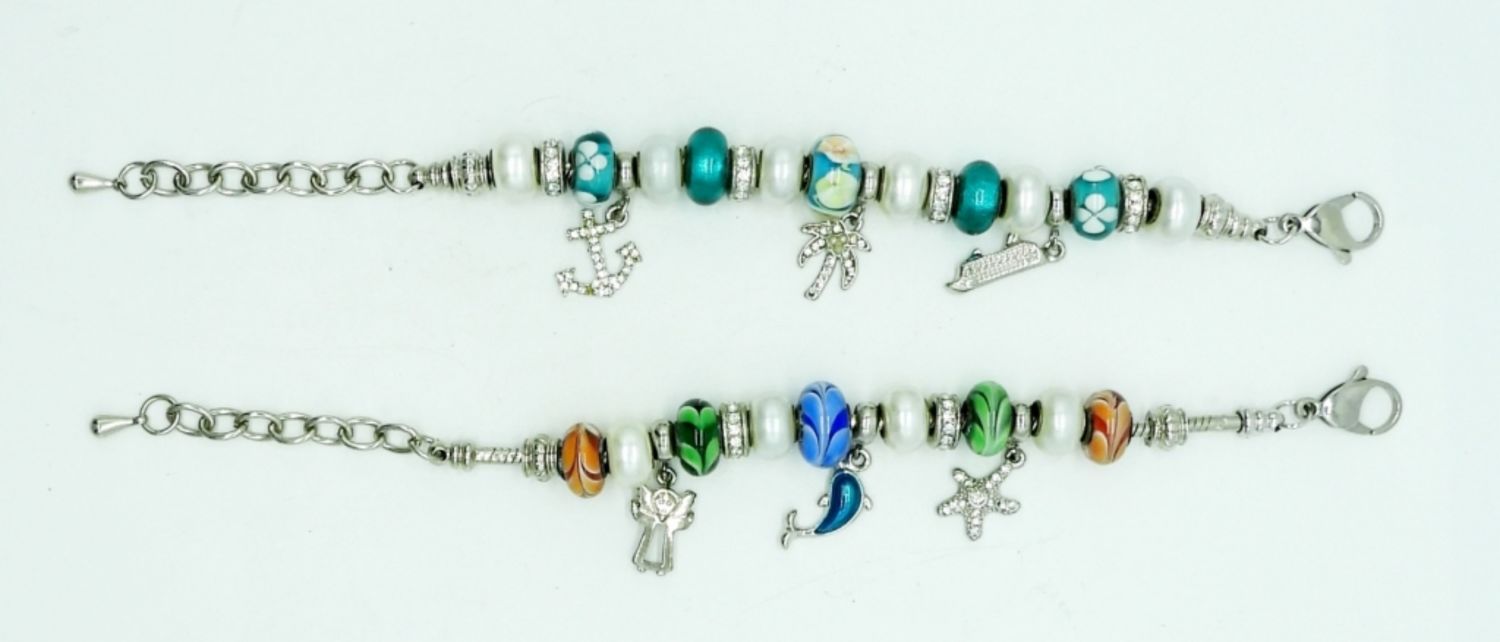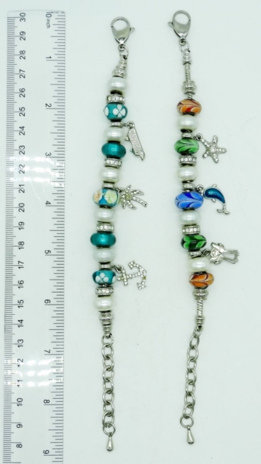 BEAUTIFUL GLASS SLIDER BEADS & SPARKLY CHARMS – 9 INCH LENGTH