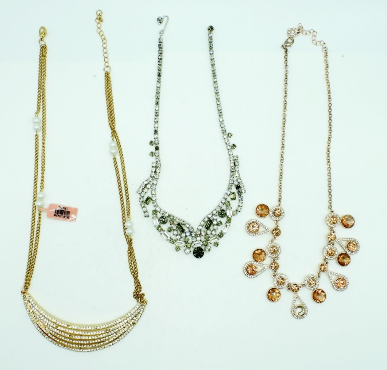 22″ GOLD TONE WITH CLEAR RHINESTONES & MOTHER OF PEARL; 15″ SILVER TONE WITH CLEAR RHINESTONES; 20″ ROSE GOLD WITH PINK RHINESTONES