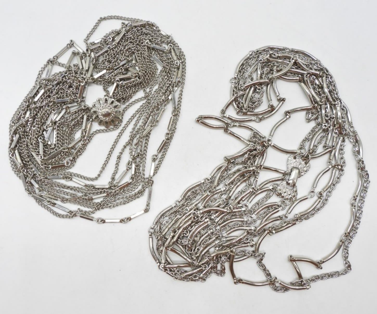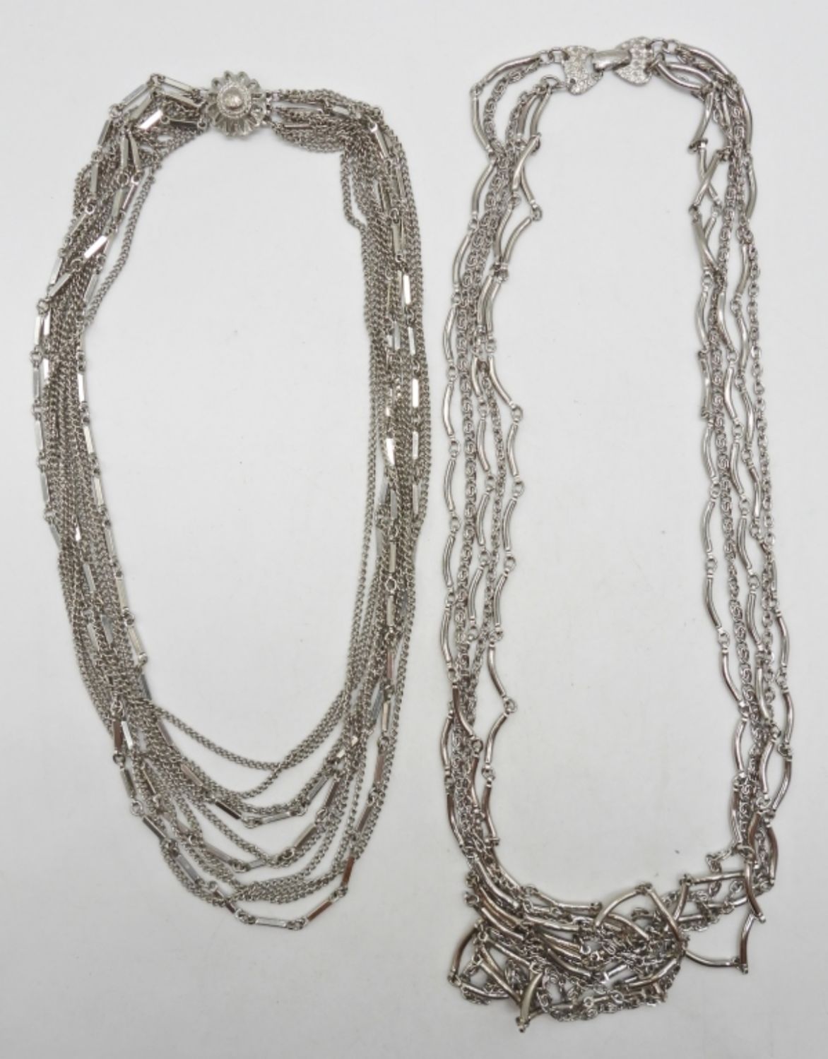 SILVER-TONE LAYERED CHAINS. (1) 18″ & (1) 26″