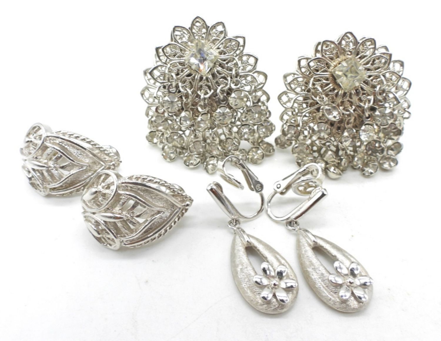 CLIP-ON EARRINGS & (1) VINTAGE RHINESTONE CLIP-ON SET – NICE LOT