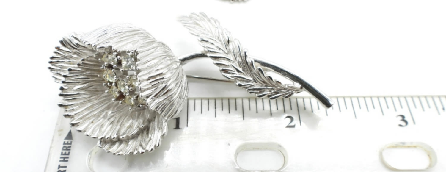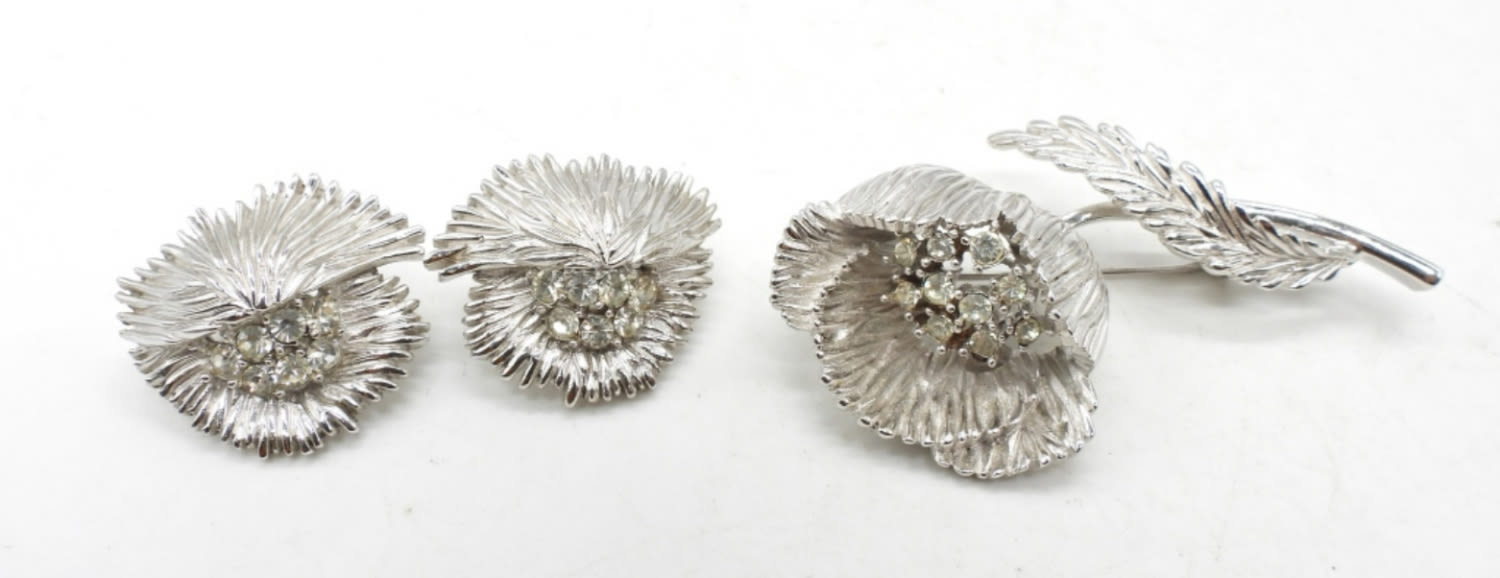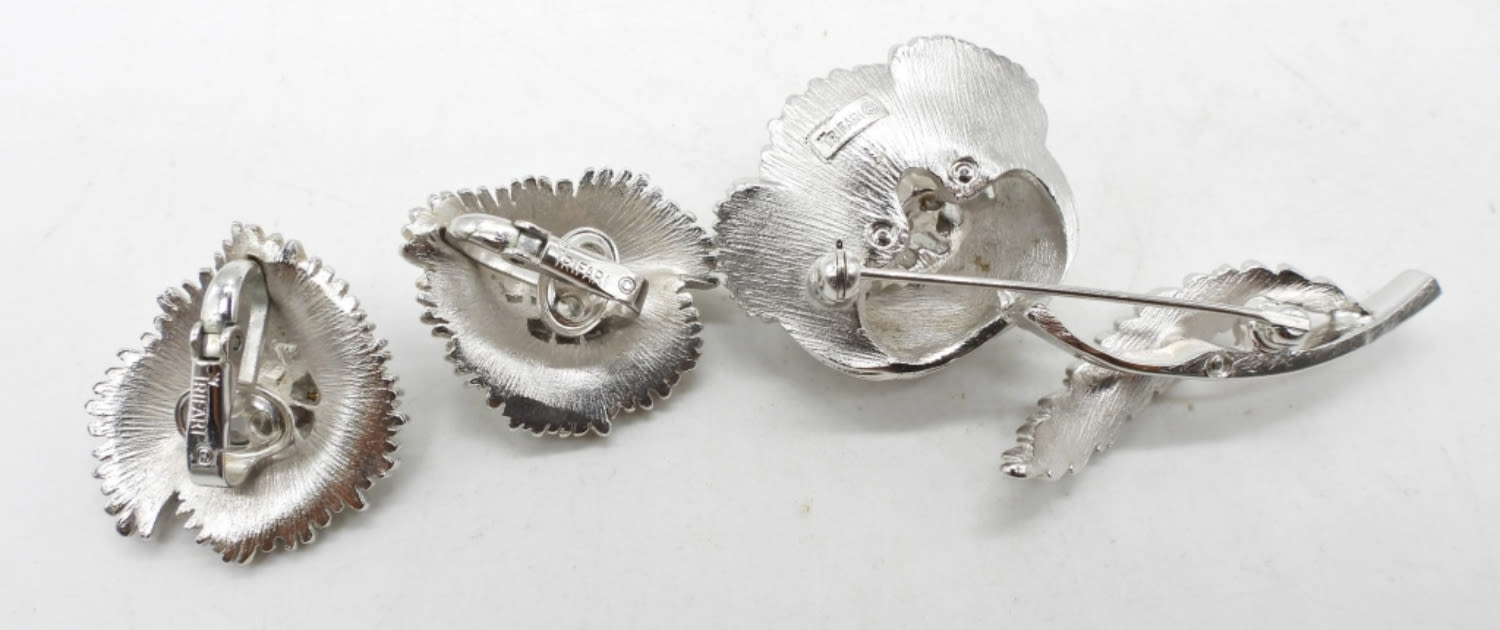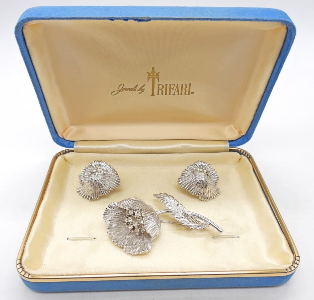 BEAUTIFUL CLEAR RHINESTONE CENTER – VERY NICE CONDITION in TRIFARI BOX