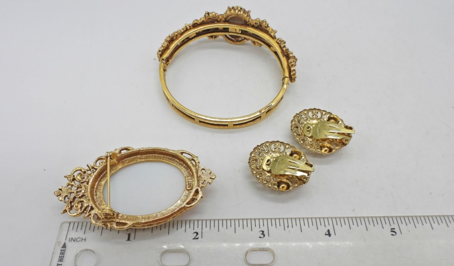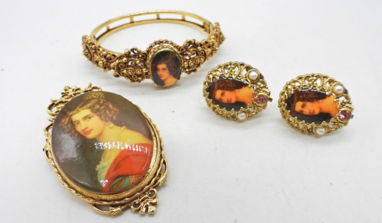 PIN, BRACELET & EARRINGS – (bracelet shows light crack in picture)