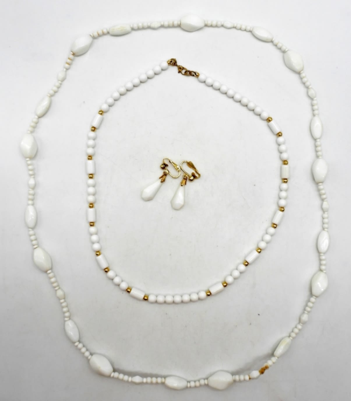 PLUS 18″ PLASTIC WHITE / GOLD BEADED RETRO NECKLACE