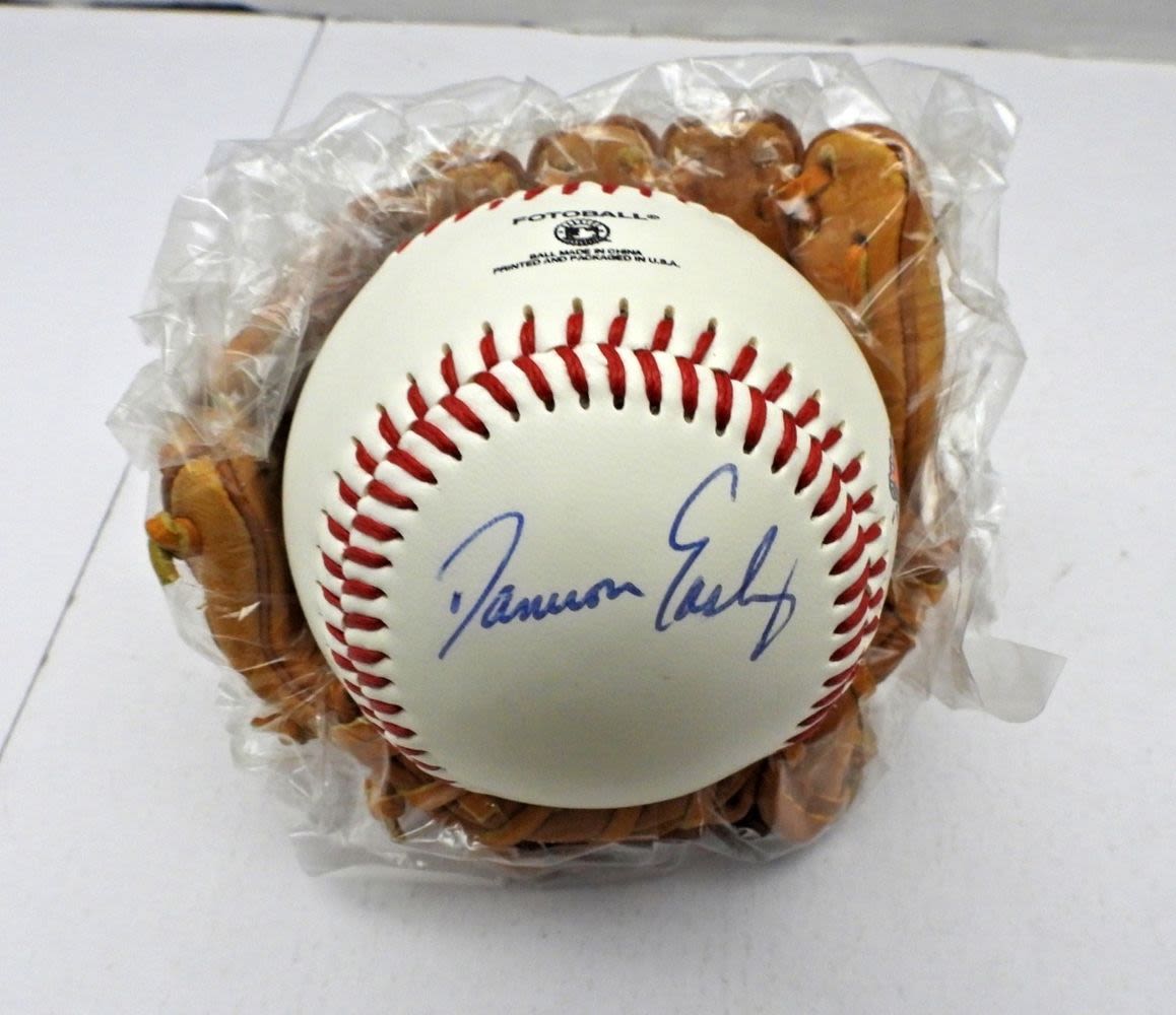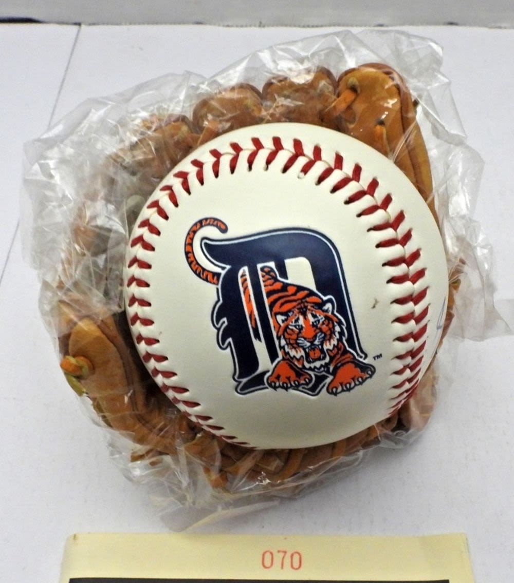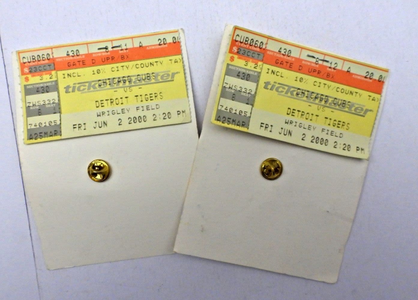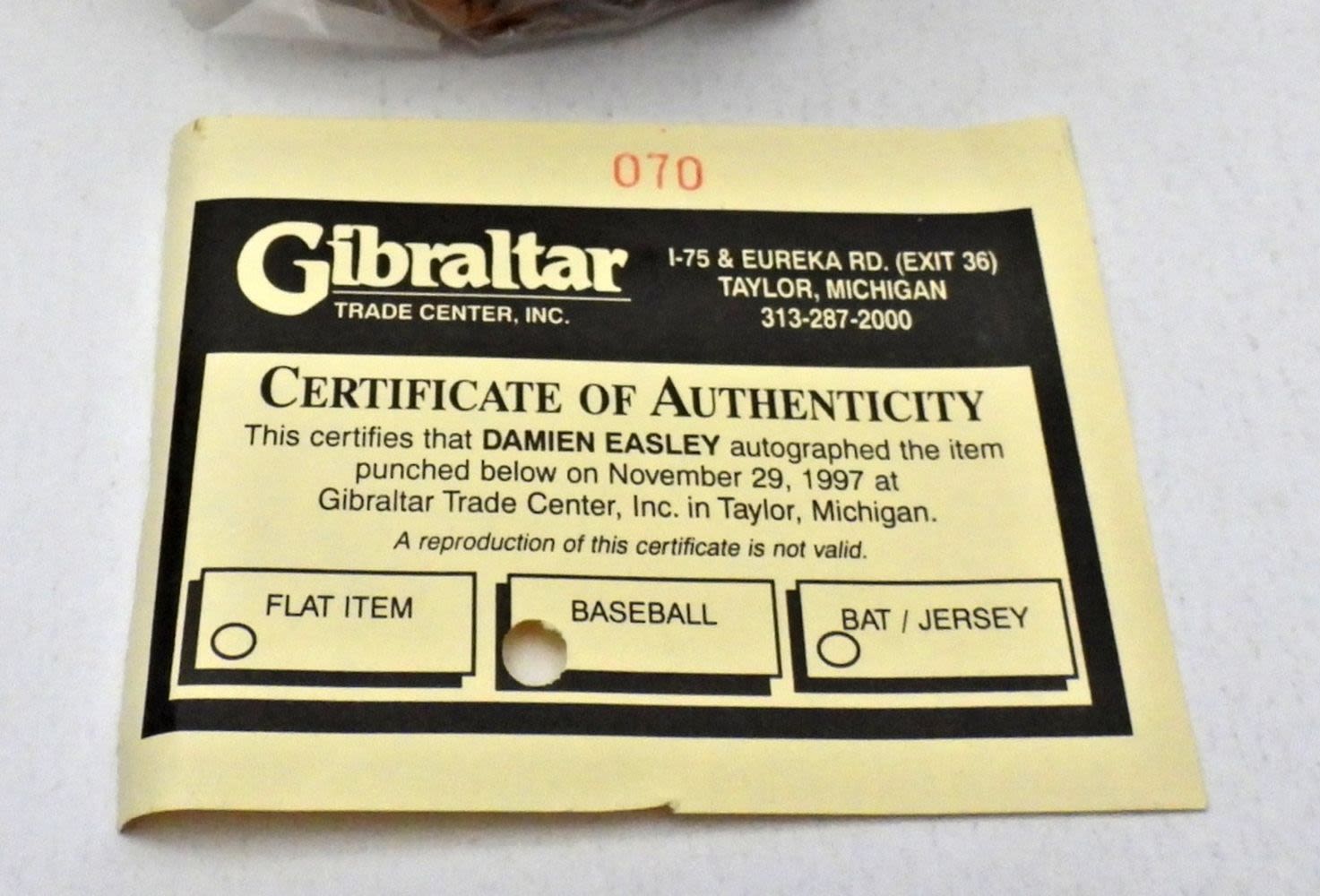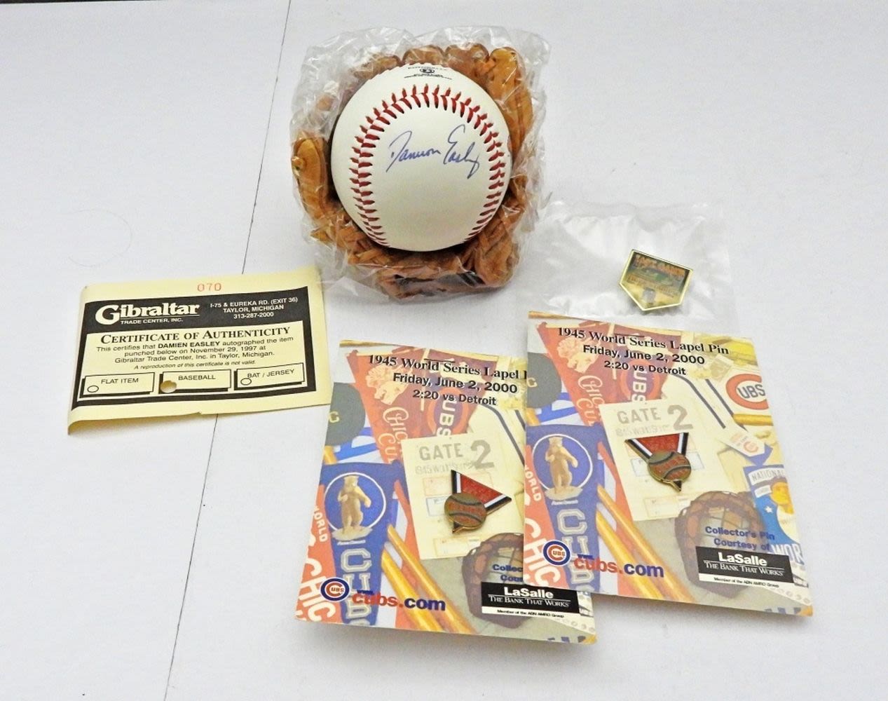 DETROIT TIGERS COMMEM BALL w/MINI GLOVE AUTO by DAMIEN EASLEY with GIBRALTAR COA & (2) TIGERS 2000 WRIGLEY FIELD TICKETS / PINS