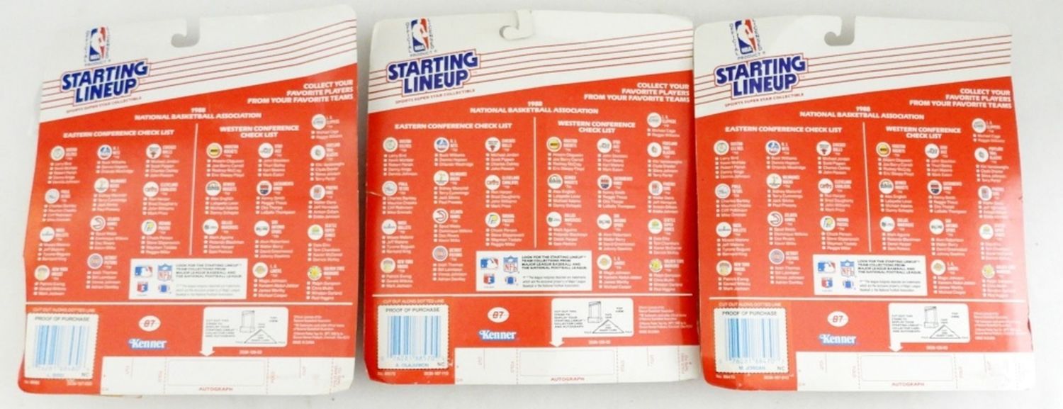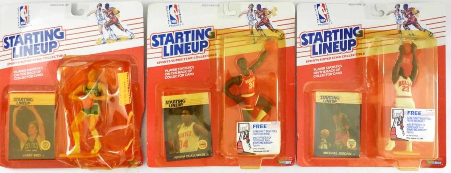 LARRY BIRD -BOX IS DAMAGE, MICHEAL JORDAN NORMAL WEAR FROM THE YEARS, AKEEM OLASJUWON NORMAL WEAR FROM THE YEARS