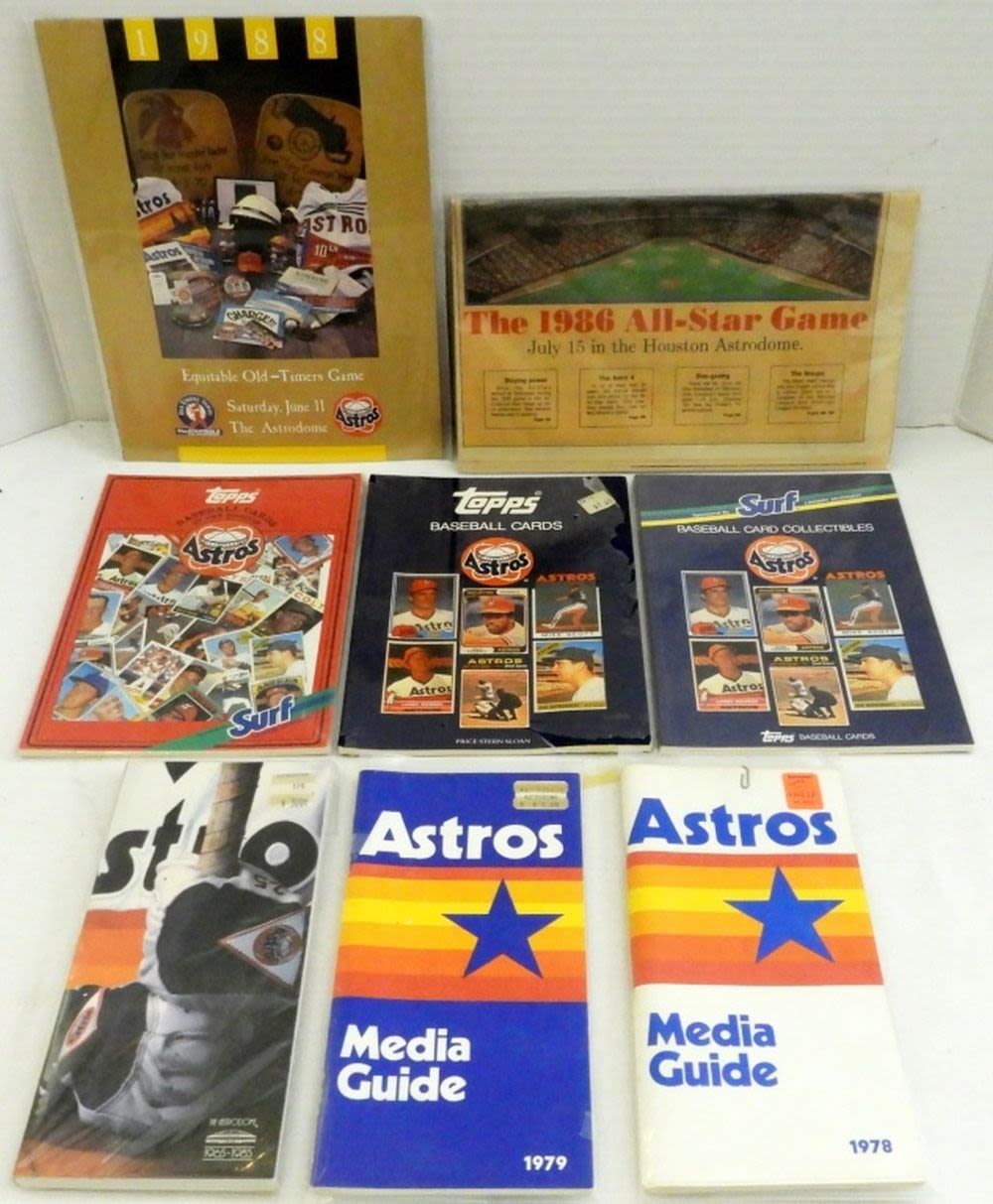 INCLUDING 1978, 1979 & 1985 MEDIA GUIDES, (3) TOPPS BASEBALL CARDS ASTROS COLLECTIBLES BOOKS & MORE!