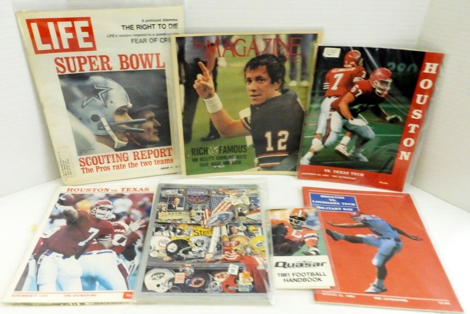 BOOKS & MORE INCLUDING 1981 FOOTBALL HANDBOOK, OFFICIAL SUPER BOWL XXV GAME PROGRAM, LIFE MAGAZINE & MORE!