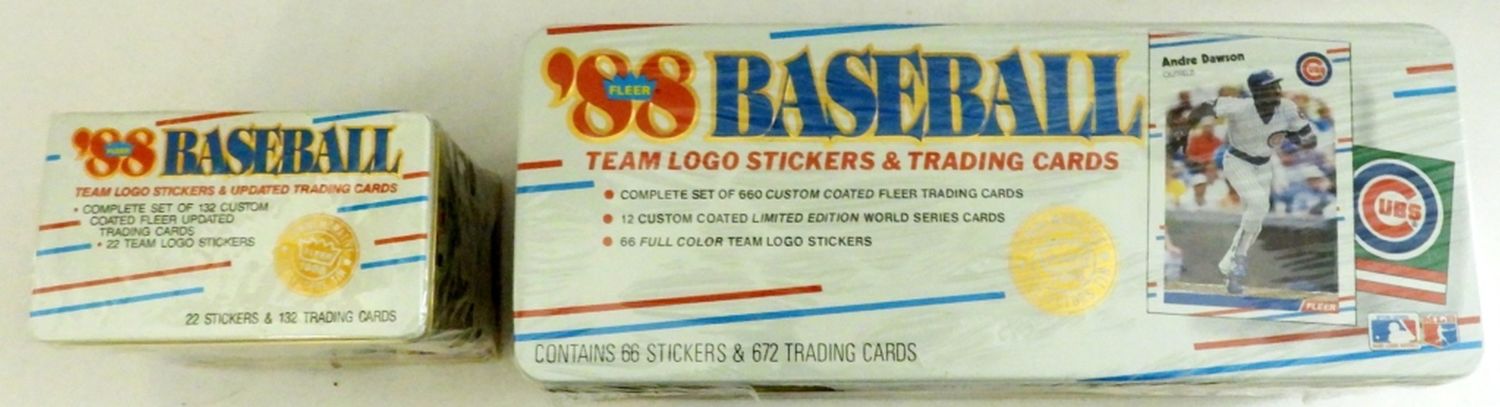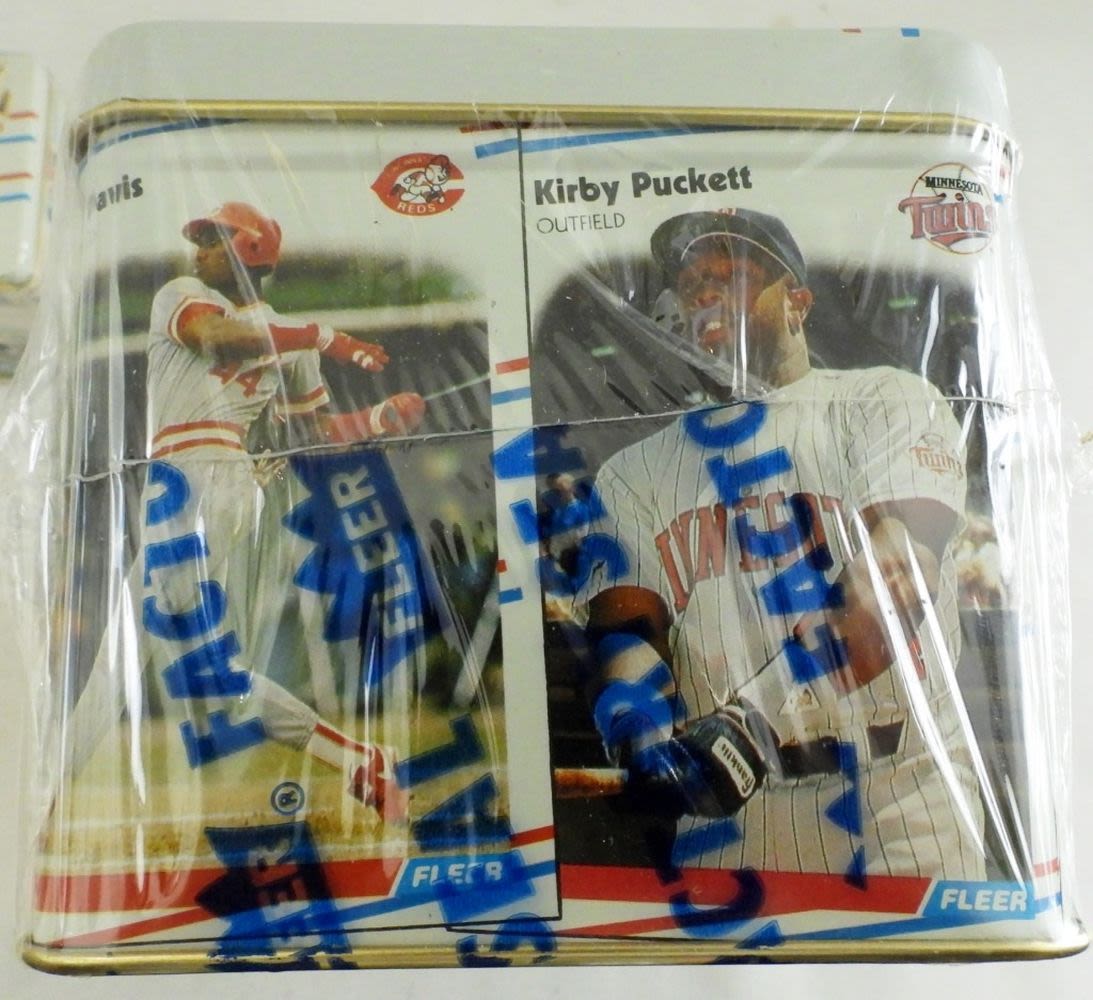 BASEBALL CARD COMPLETE CUSTOM SET IN TIN FACTORY SEALED, ALSO INCLUDES UPDATED TRADING CARDS IN SEPARATE TIN