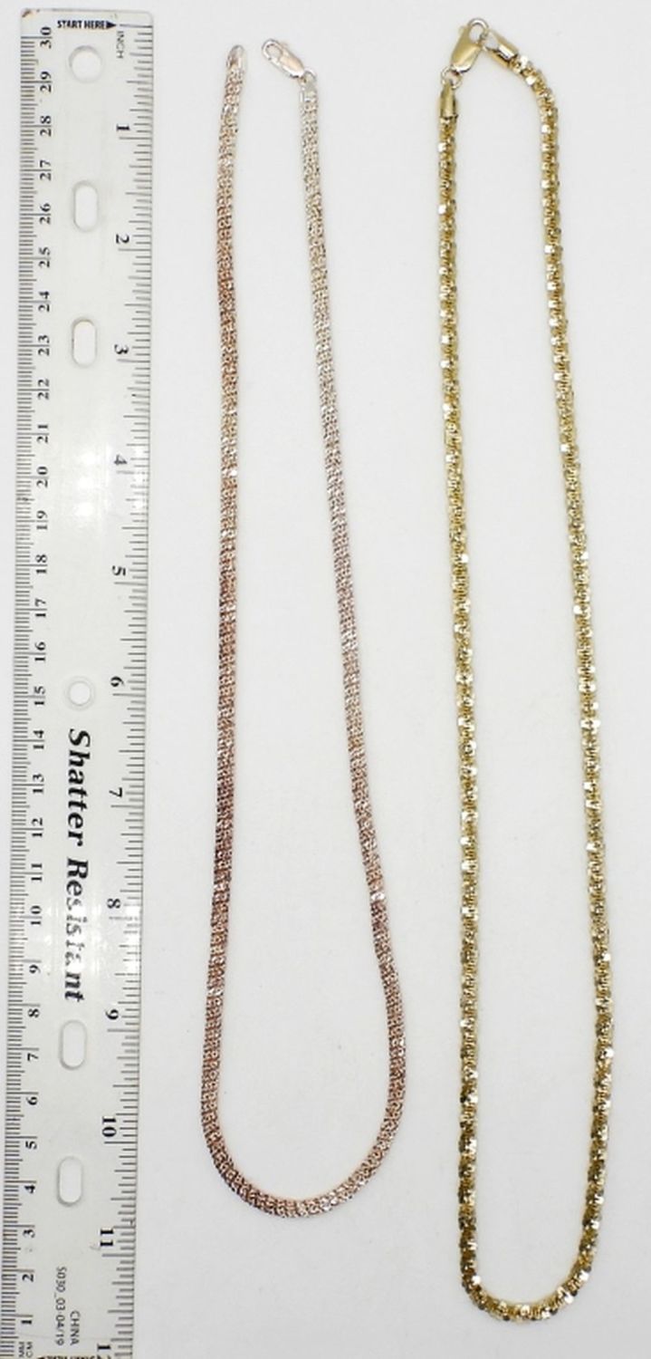 GOLD & COPPER TONE STERLING; 22″ & 24″ LENGTHS; BOTH MARKED 925 ITALY; (29.7 DWT)