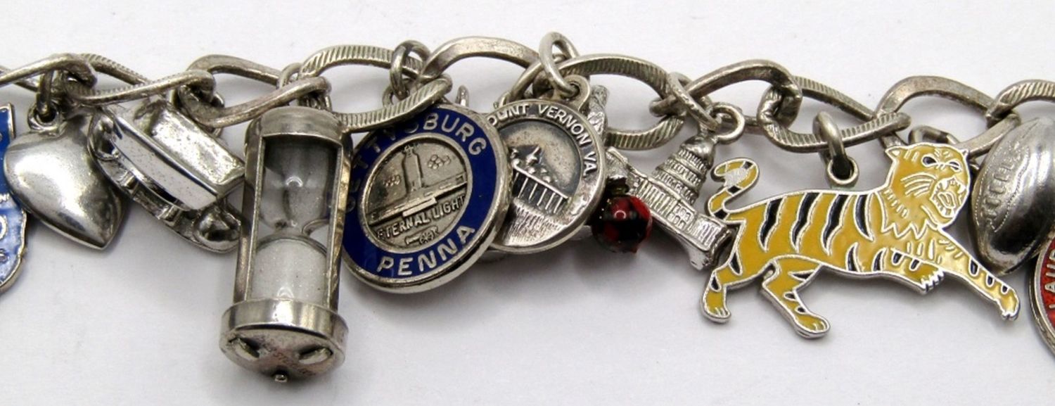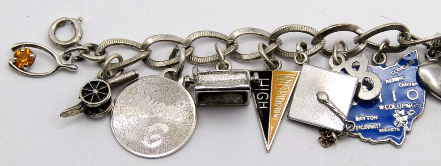 ALL STERLING VINTAGE 1980s VACATION & MORE CHARMS 7″ (28 DWT)