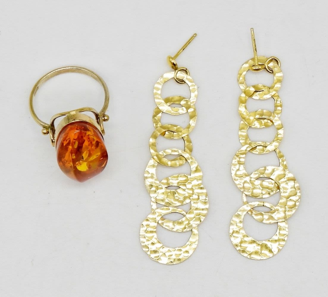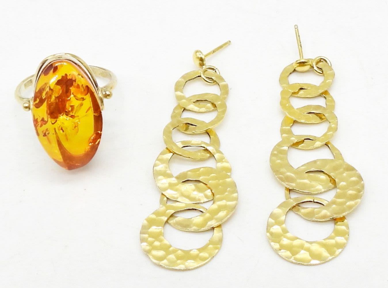 RINGS SIZE 8 – PIERCED GOLD TONED 925 EARRINGS (5.9 DWT)