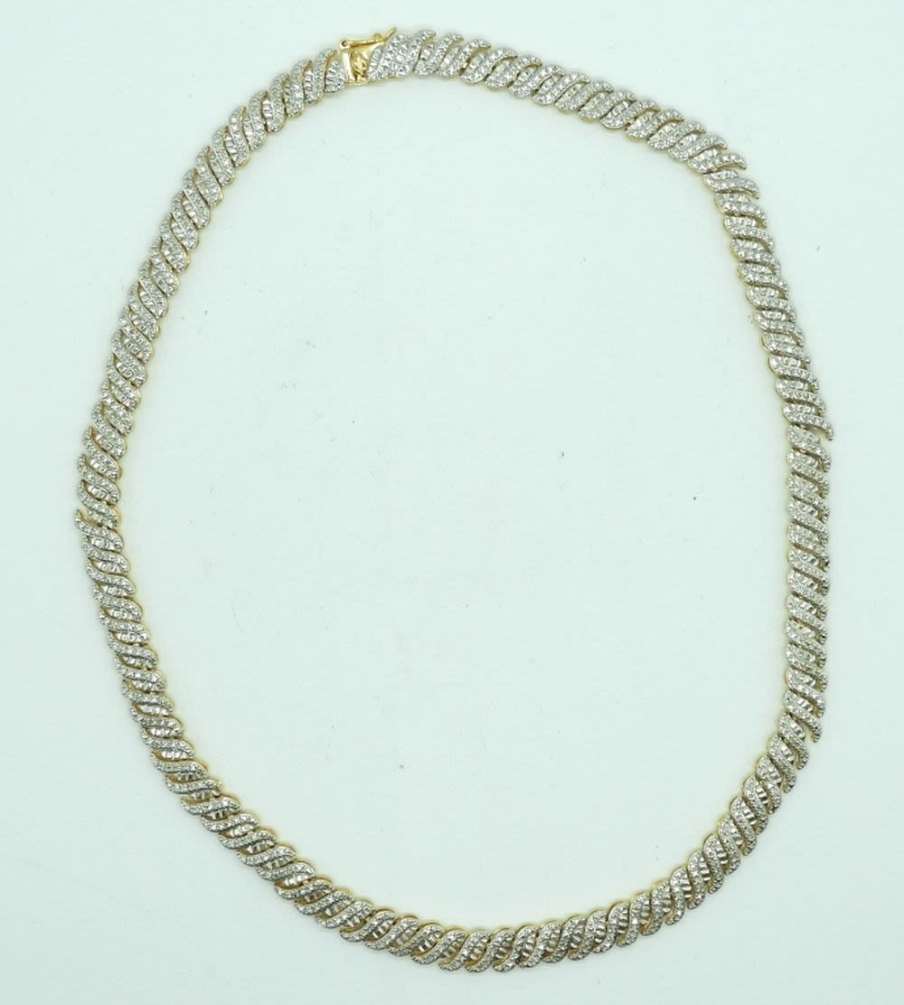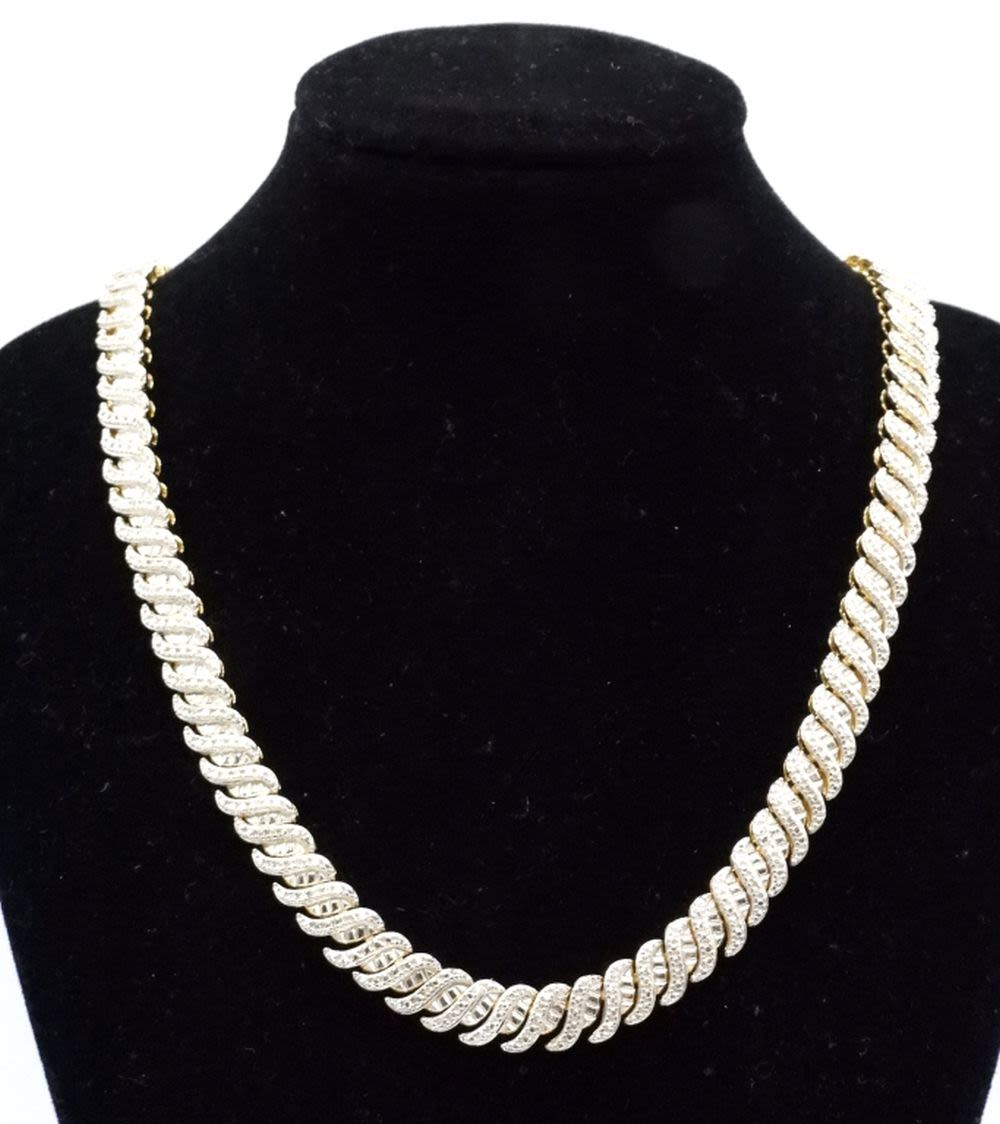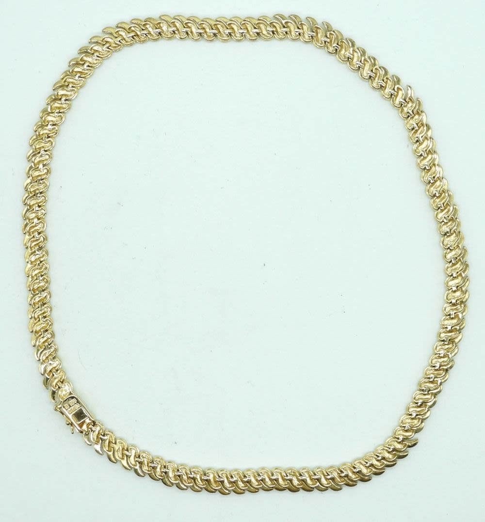 Stunning mixed silver and gold tone large link necklace. Necklace is in very good condition with working clasp. (26.3 DWT)