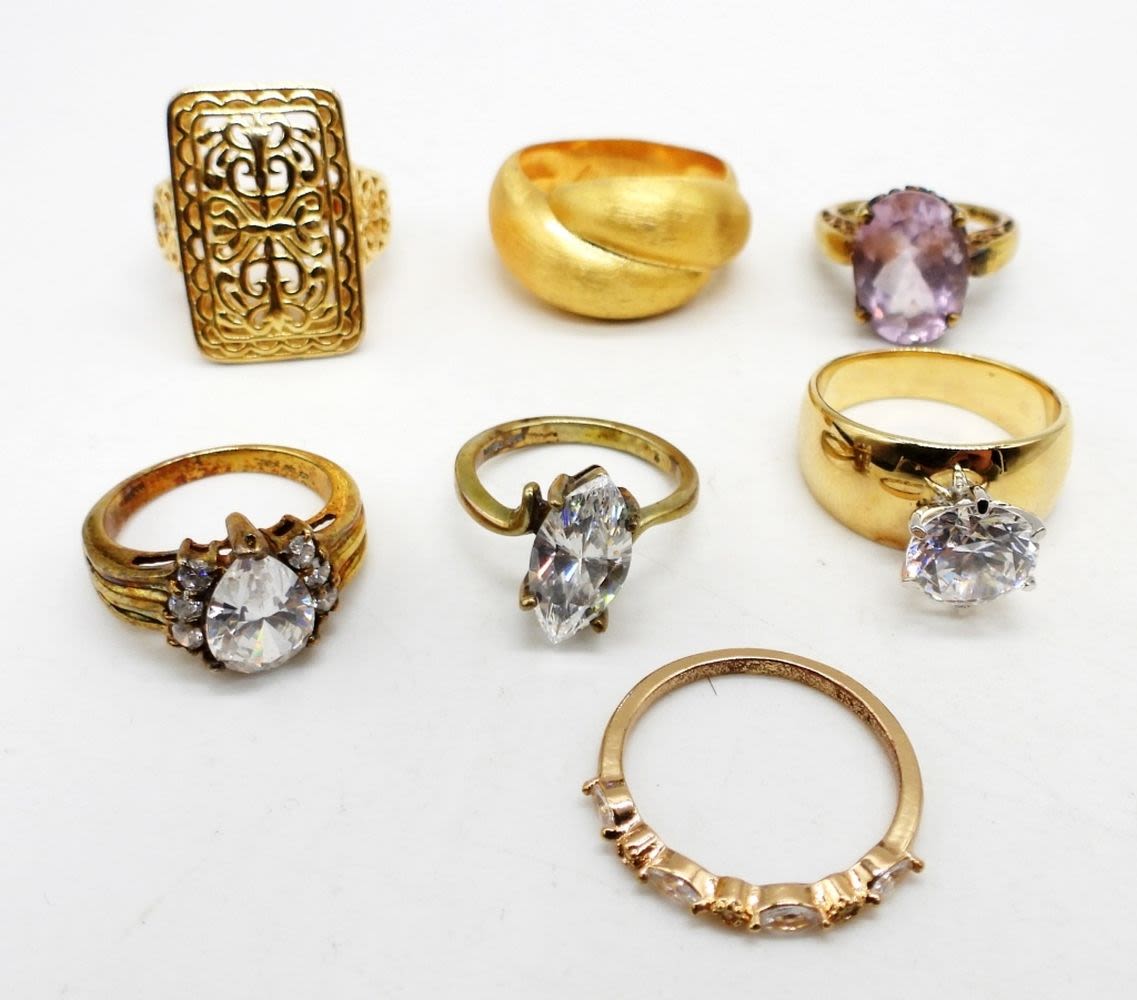 25DWT, STAMPED 925 ON ALL RINGS, ALL DIFFERENT STYLES SIZES 5(3), 7(1), 8(2) 10(1)