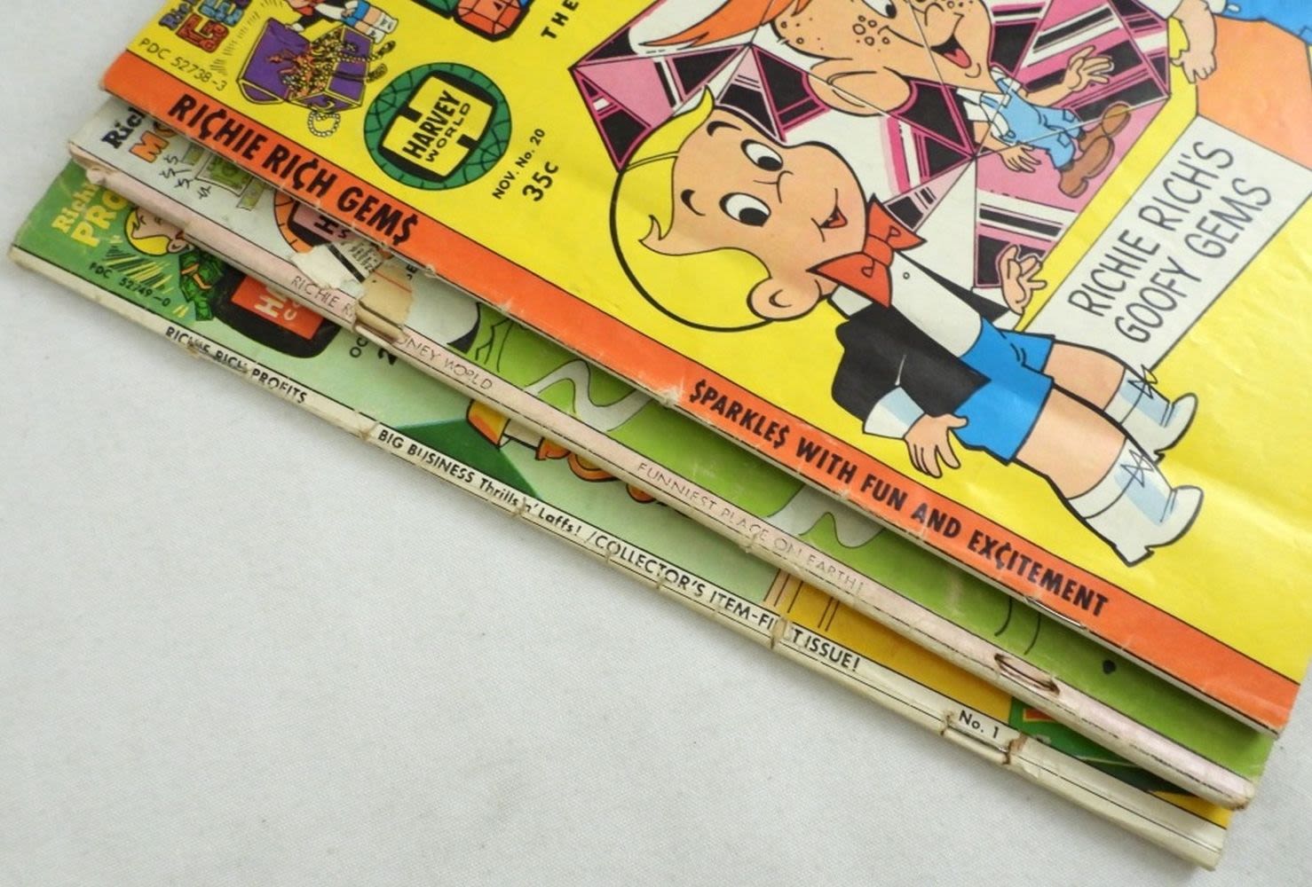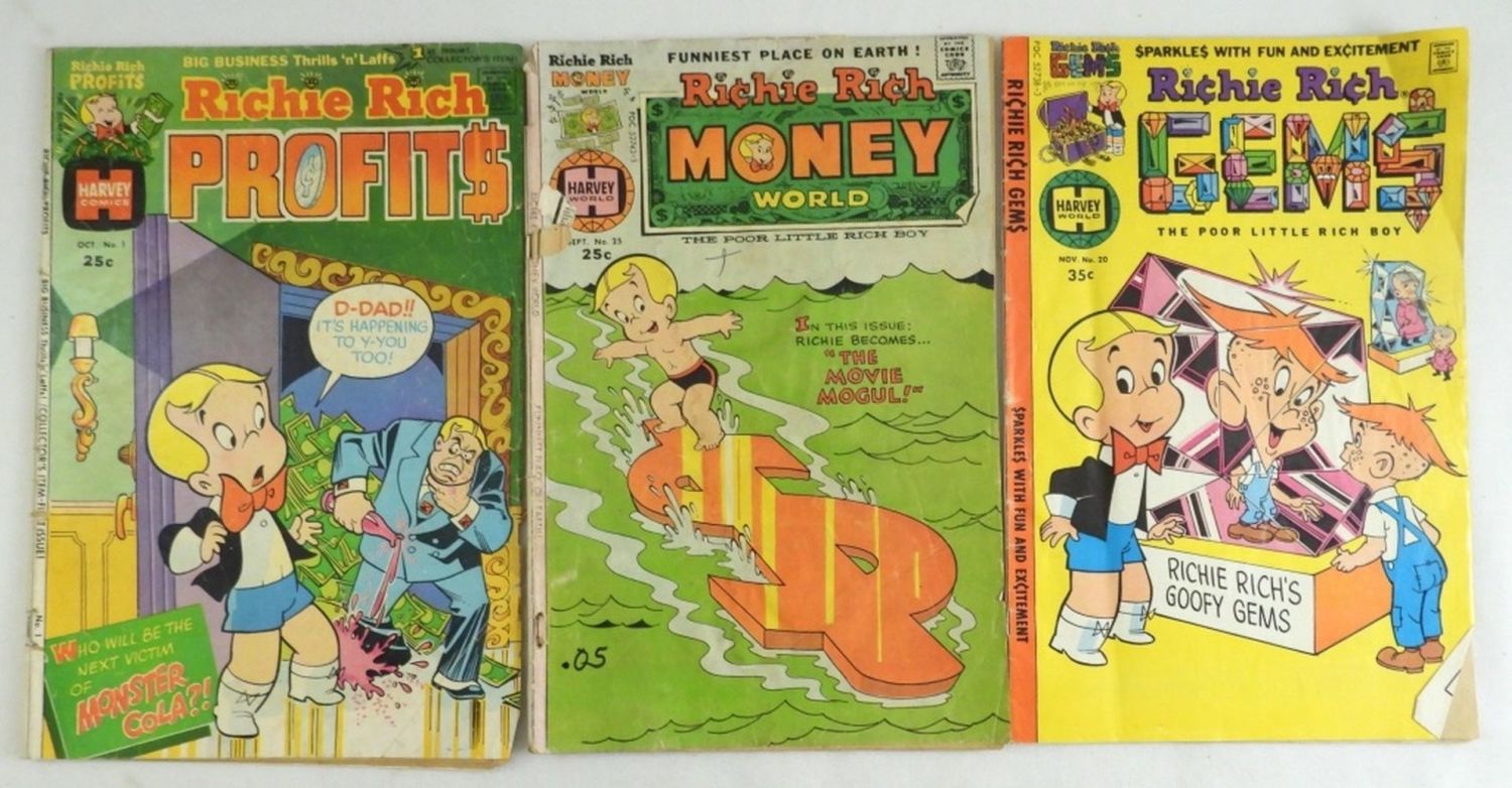 1974 Richie Rich Profits #1, 1976 Richie Rich Money World #25, 1977 Richie Rich Gems #20; Fair Conditions.