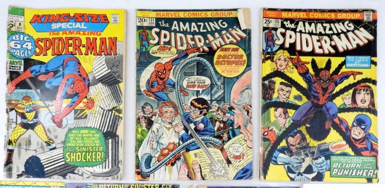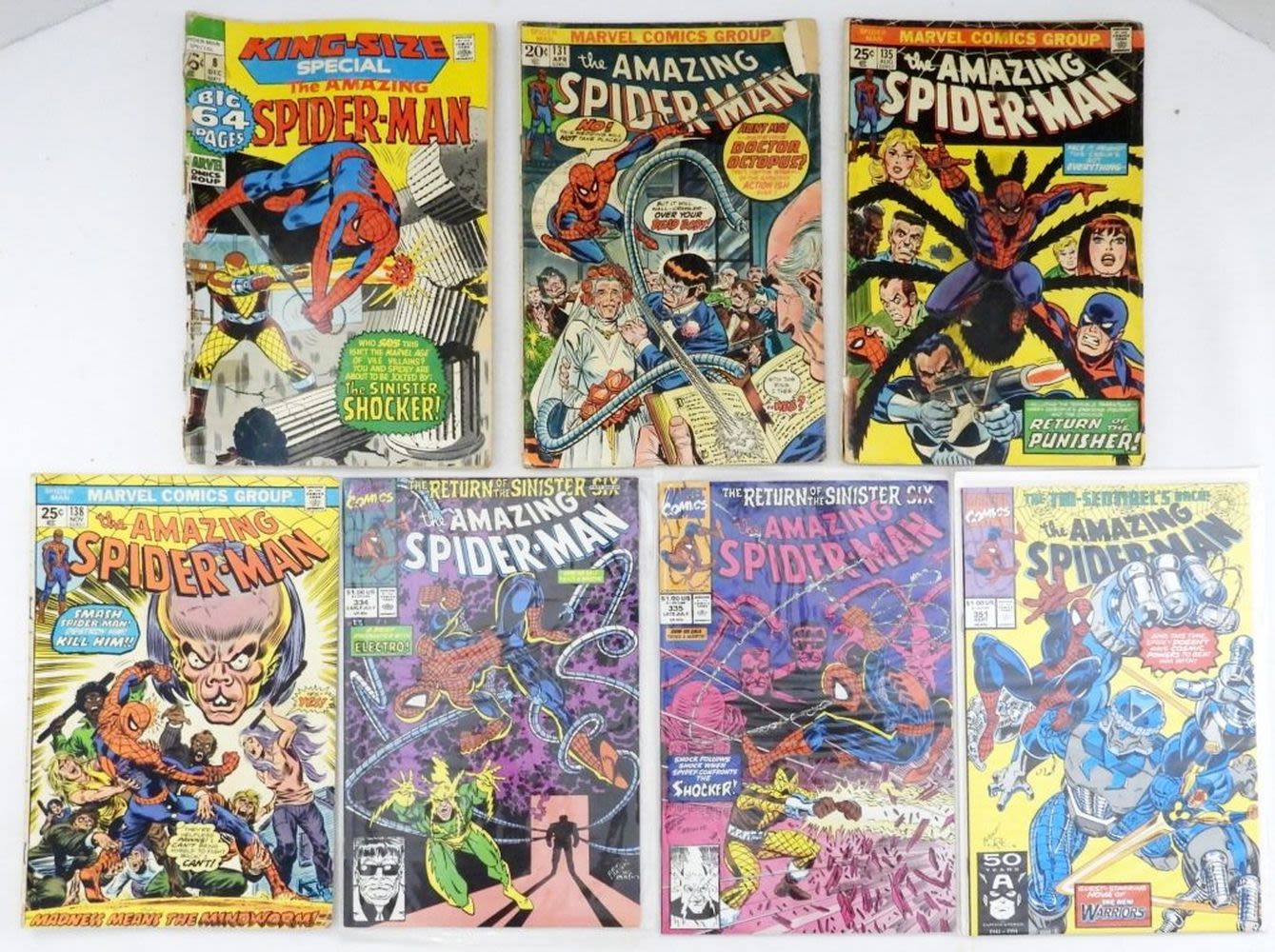THE AMAZING SPIDER-MAN INCLUDING KING-SIZE SPECIAL ISSUE #8; ISSUES #131, #135, #138, #334, #335, & #351 (SOME ARE SLEEVED/BOARDED; SOME ARE WORN CONDITION)