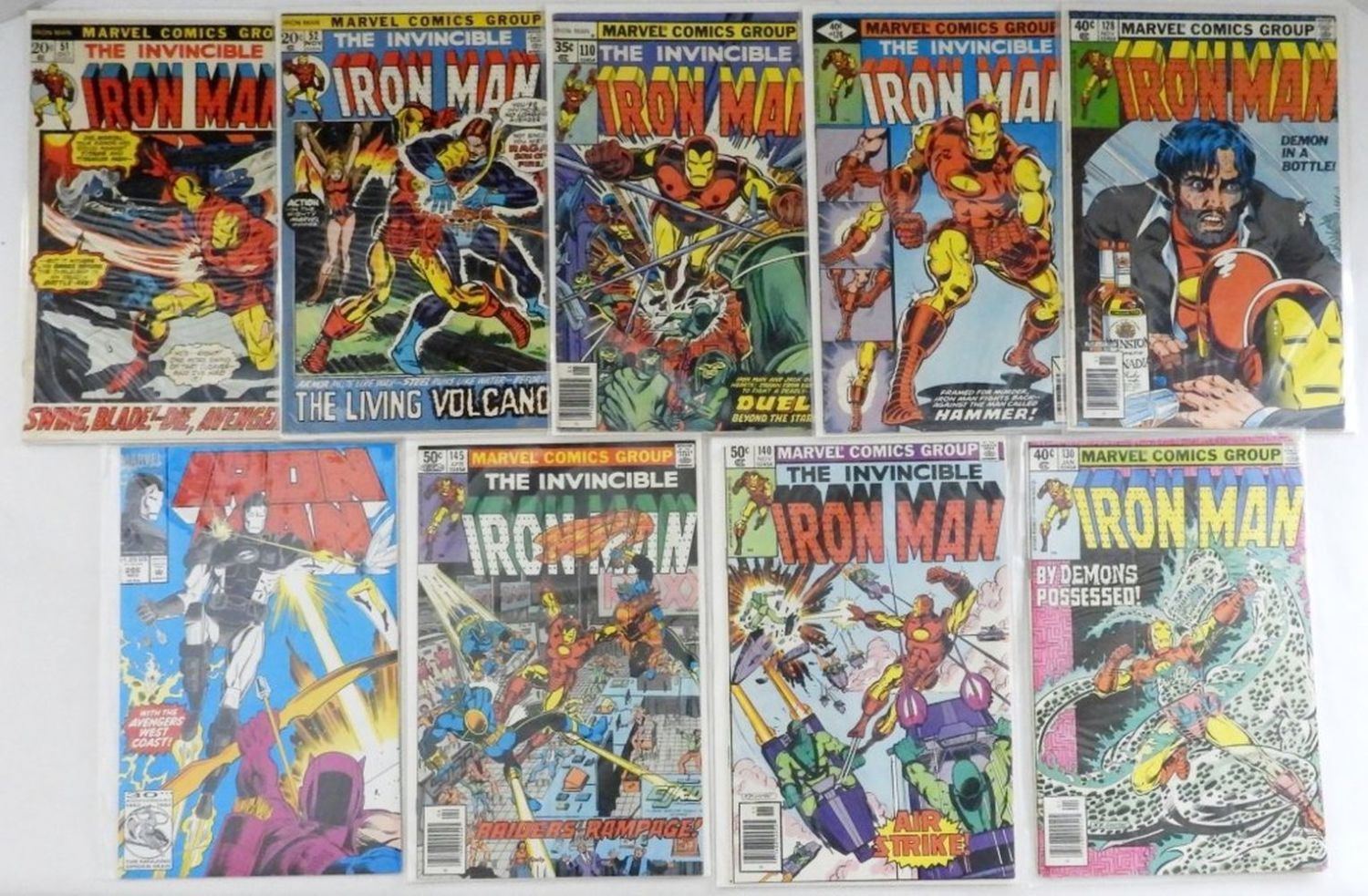 ALL DIFFERENT – NICE CONDITION – #51, 52, 110, 126, 128, 130, 140, 145, 286 IRON MAN 30th ANNIV
