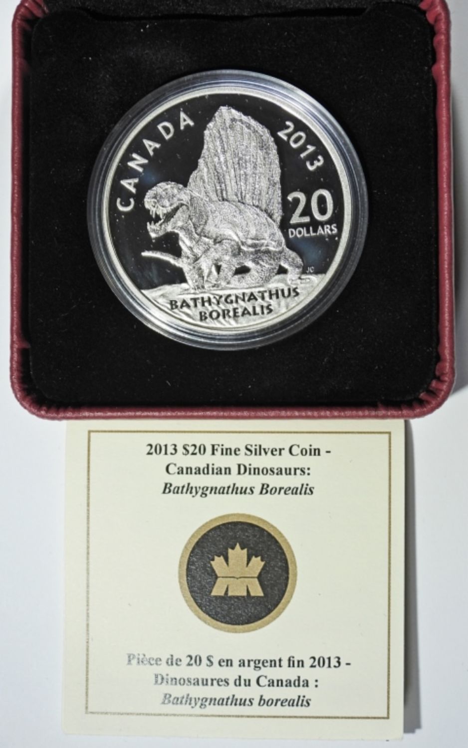 31.39 GRAMS .999 FINE SILVER COIN. CANADIAN DINOSAURS SERIES IN OGP W/ COA.