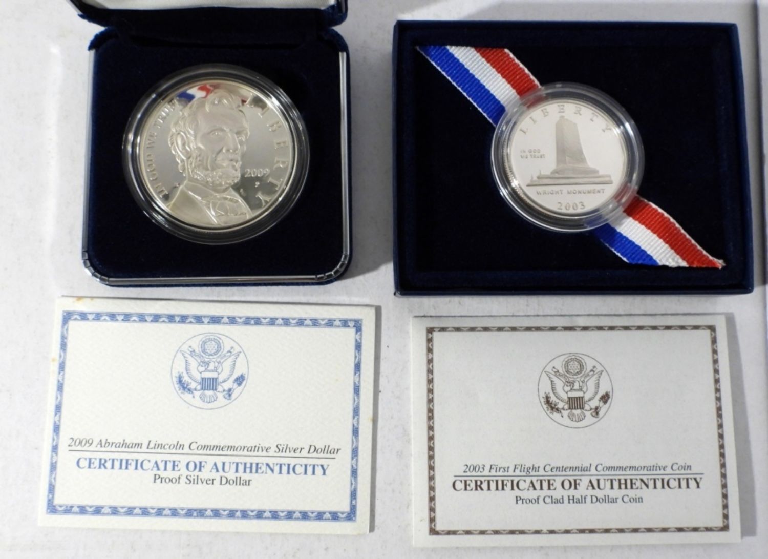 2009-P ABRAHAM LINCOLN PROOF SILVER DOLLAR & 2003 FIRST FLIGHT CENTENNIAL PROOF CLAD HALF DOLLAR. BOTH IN OGP W/ COAs