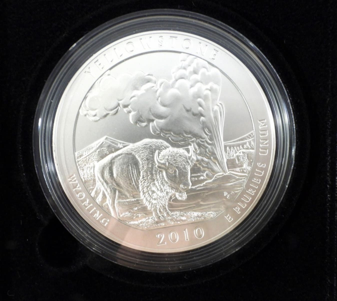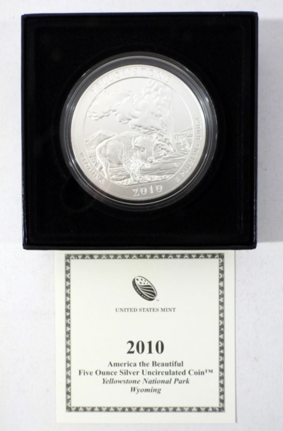 AMERICA THE BEAUTIFUL 5oz .999 SILVER UNCIRCULATED COIN. YELLOWSTONE NATIONAL PARK WYOMING. IN OGP W/ COA