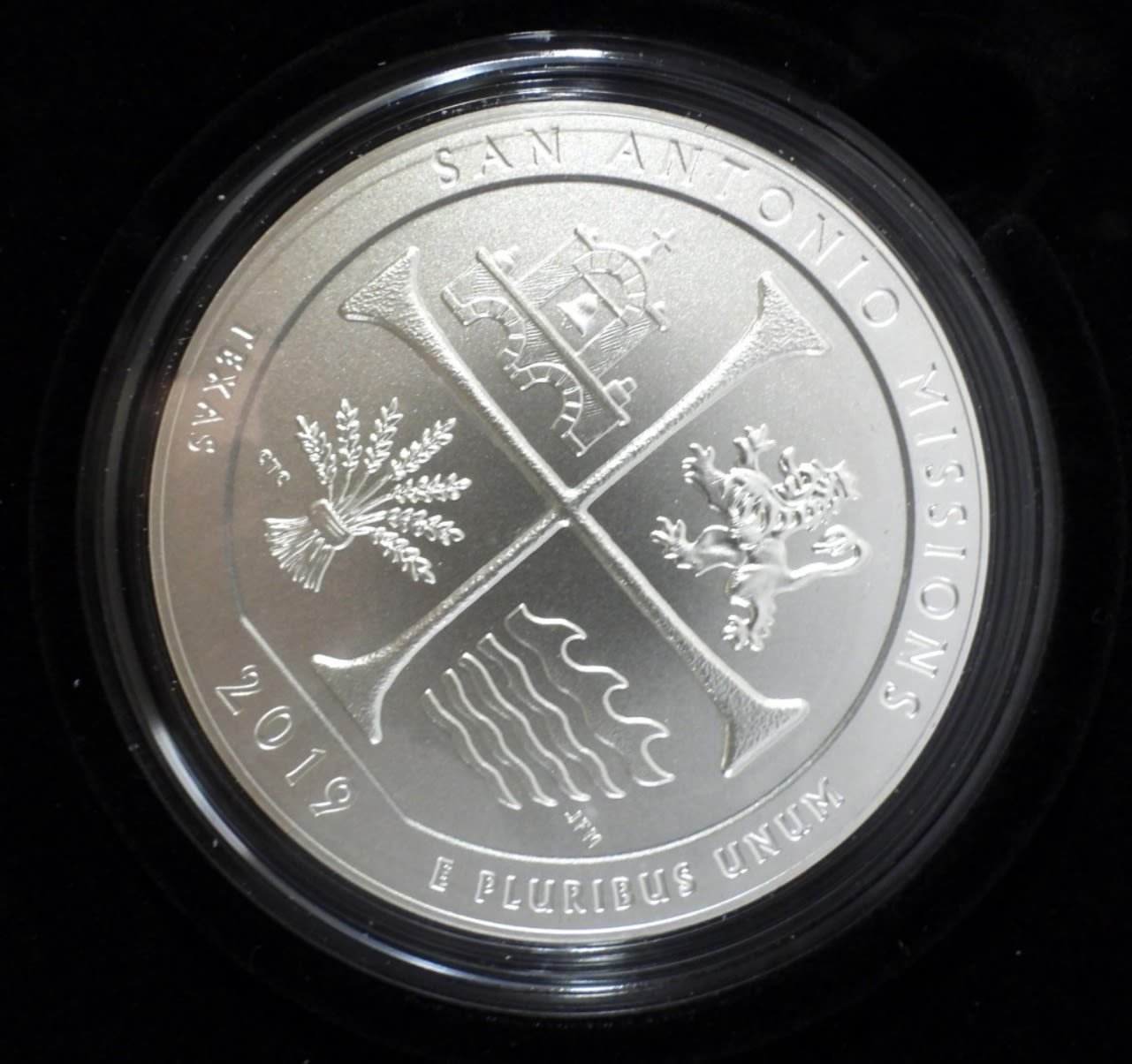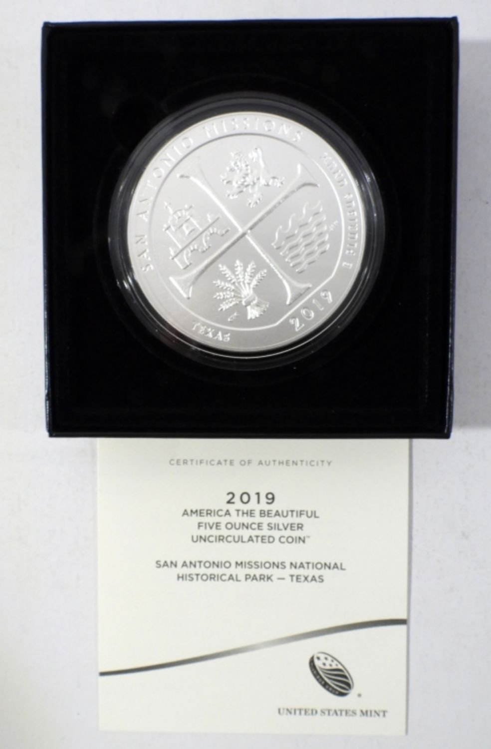 AMERICA THE BEAUTIFUL 5oz .999 SILVER UNCIRCULATED COIN. SAN ANTONIO MISSIONS NATIONAL HISTORICAL PARK – TEXAS. IN OGP W/ COA