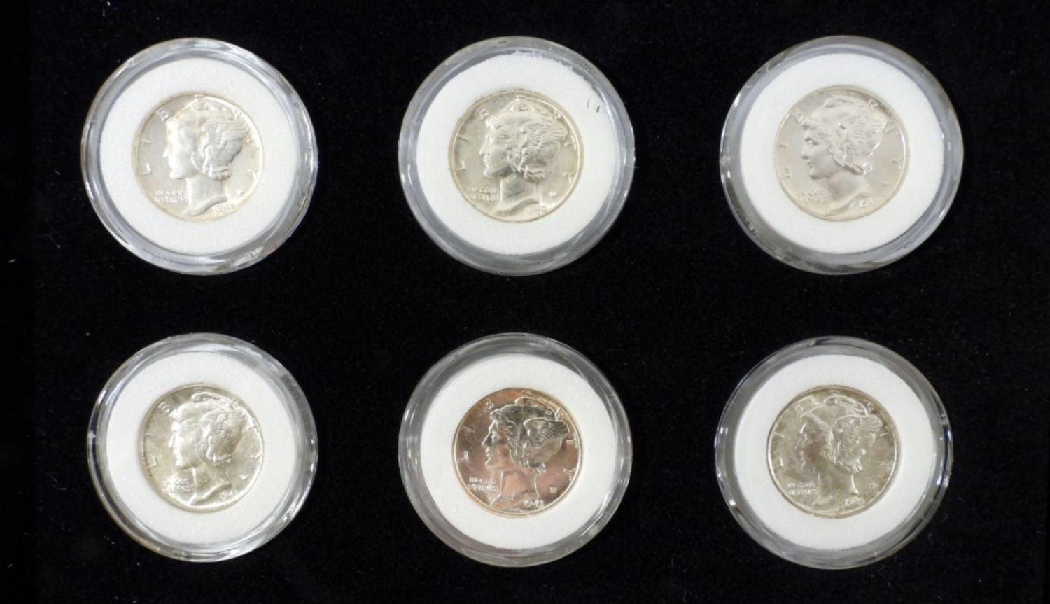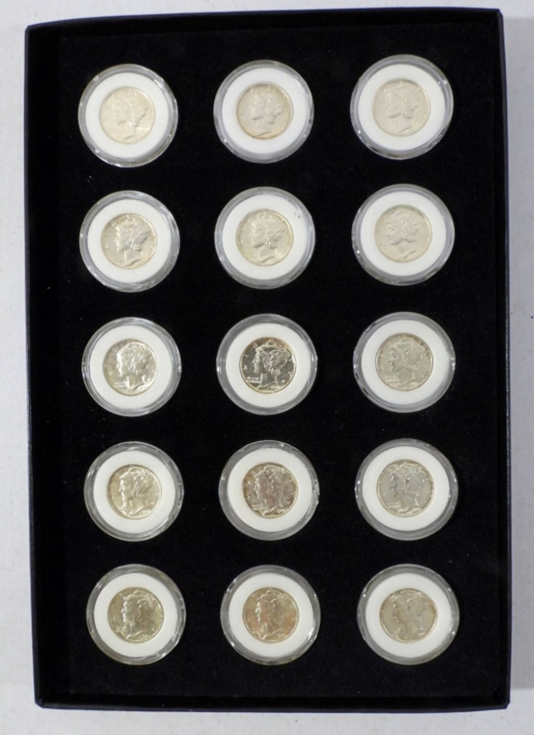 (15) MERCURY DIMES IN DISPLAY BOARD WITH BOX. VERY NICE!