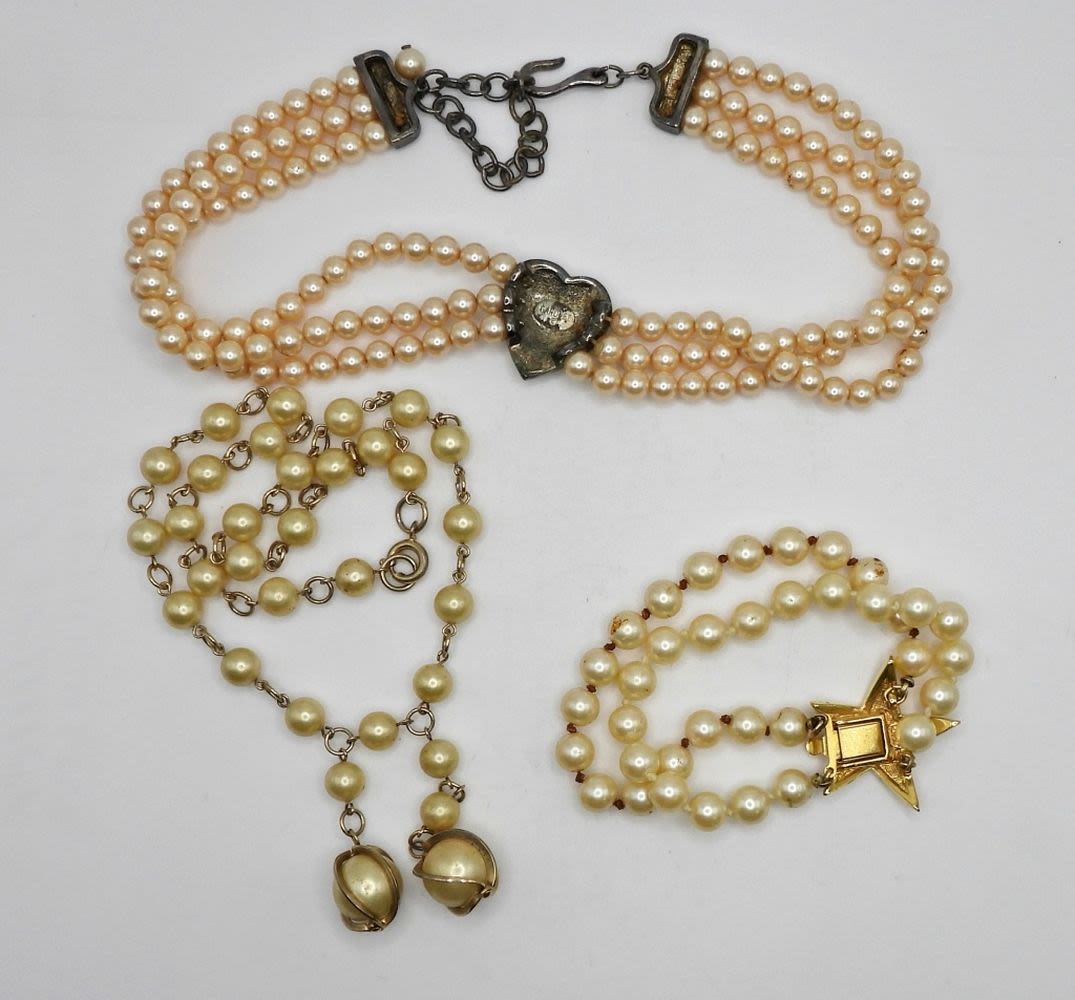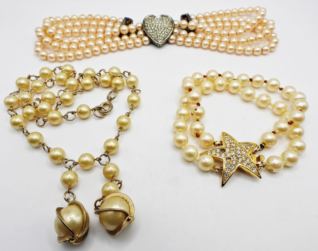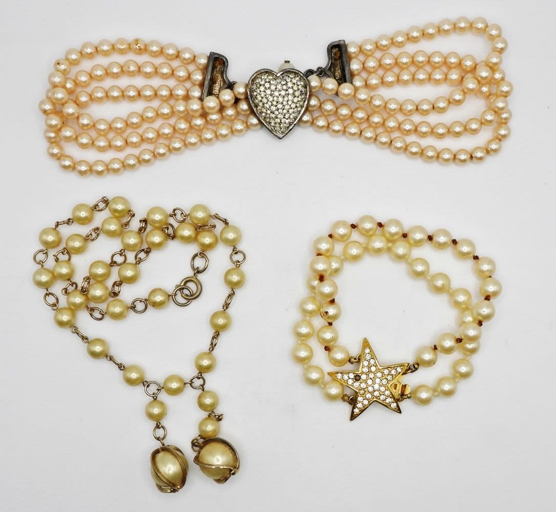 Carolee Multi Strand Heart Pendant Necklace (12.5″), Germany Made 18″ Necklace, Joan Rivers 7.5″ Multi Strand Rhinestone Star Bracelet; Used.