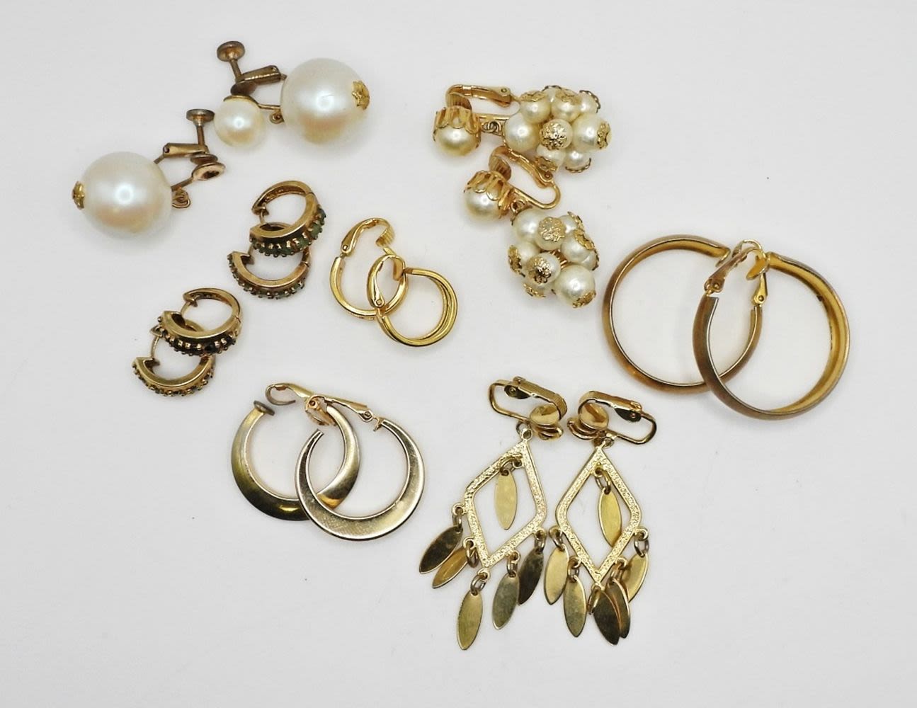 (1) Marked Crown Trifari, (1) Faux Pearl Missing on Pair; Used.