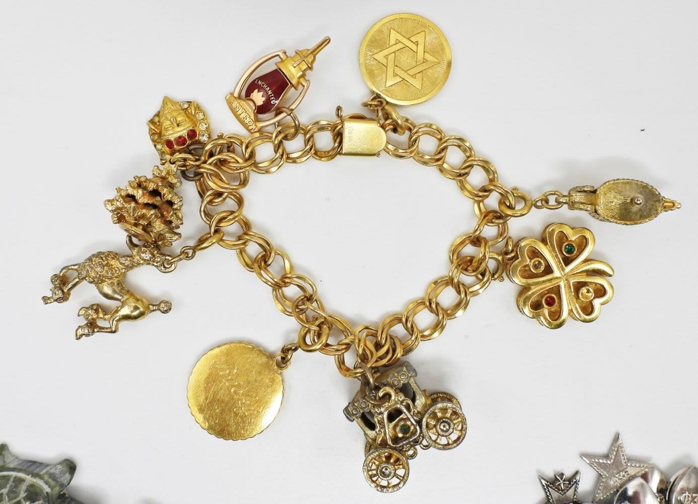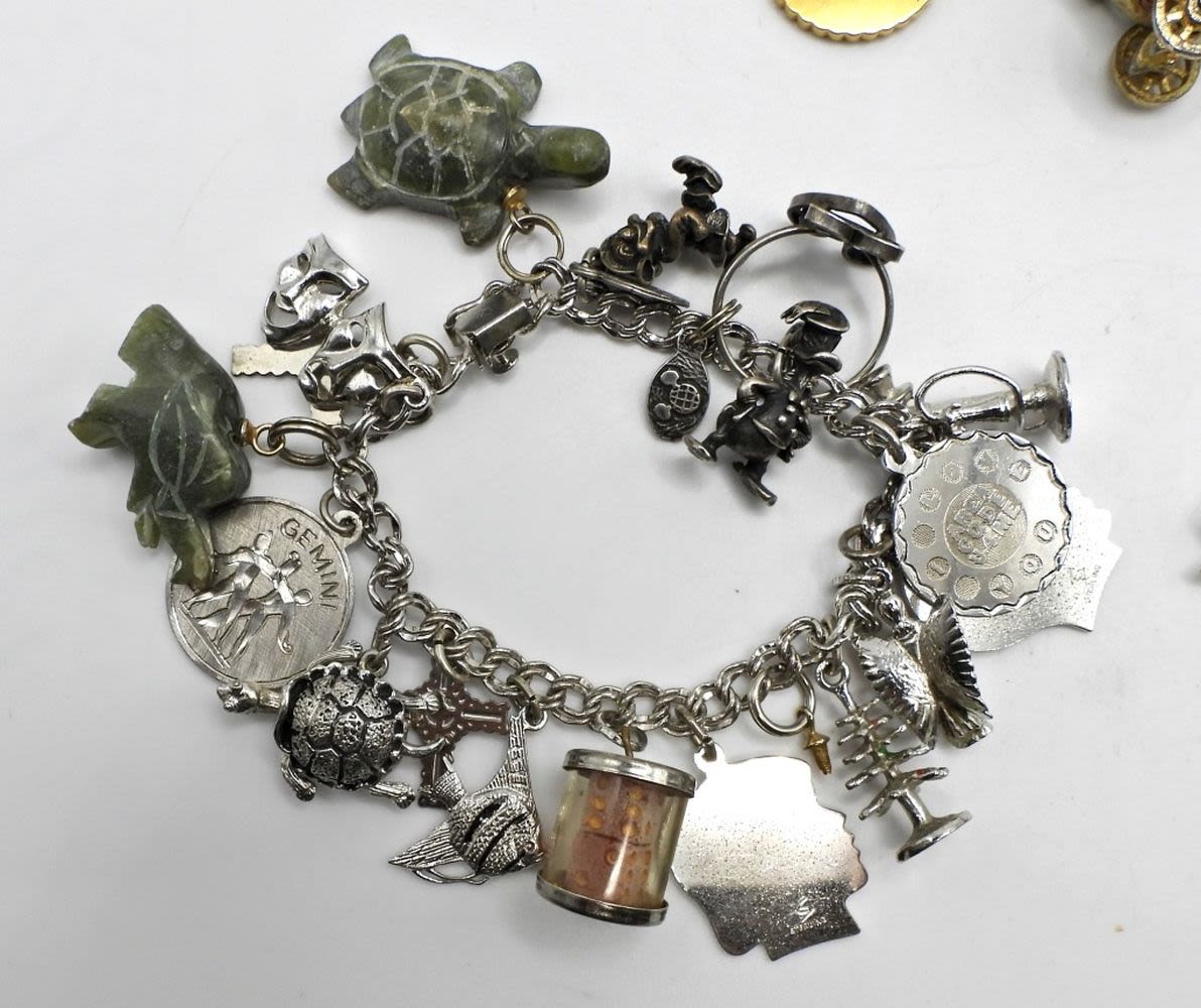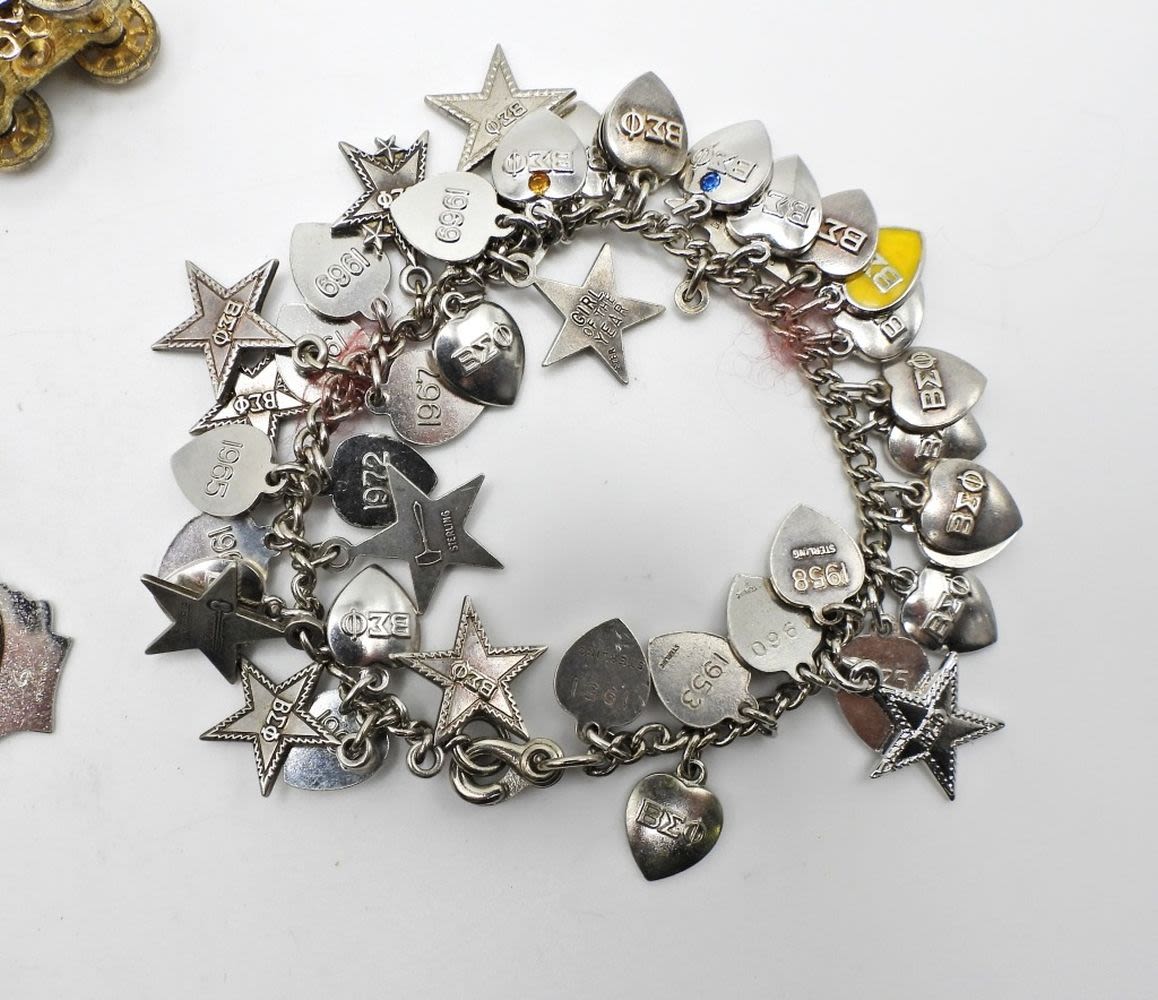 1/20 12K GF Gold Tone 7″, Silver Tone with Disney Charms 7″, Beta Sigma Phi Charm Bracelet 7″ (Loaded with Charms); Used.