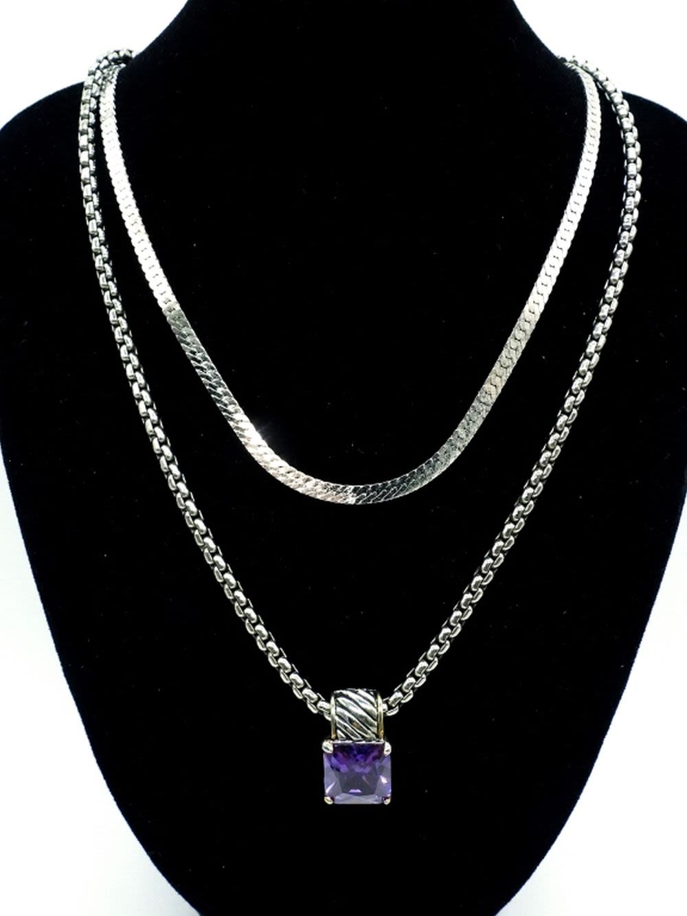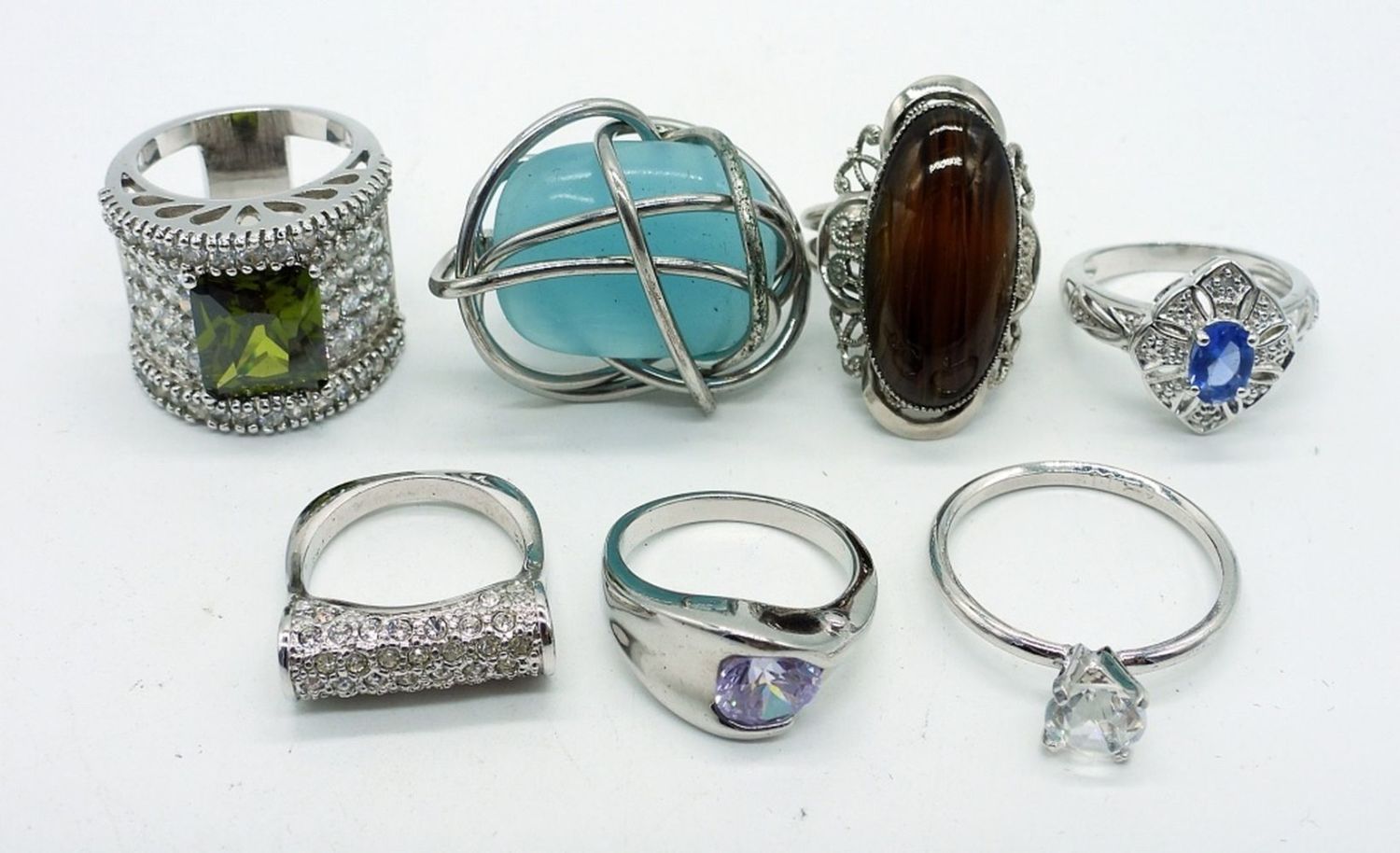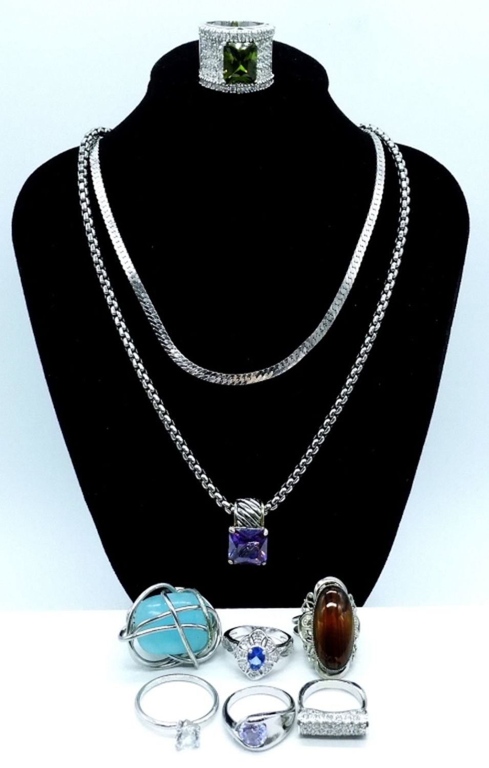 Monet necklace 17″. Purple stone necklace 16″ with extender, plus 7 fashion rings sizes 10.5 -6. Gorgeous set!