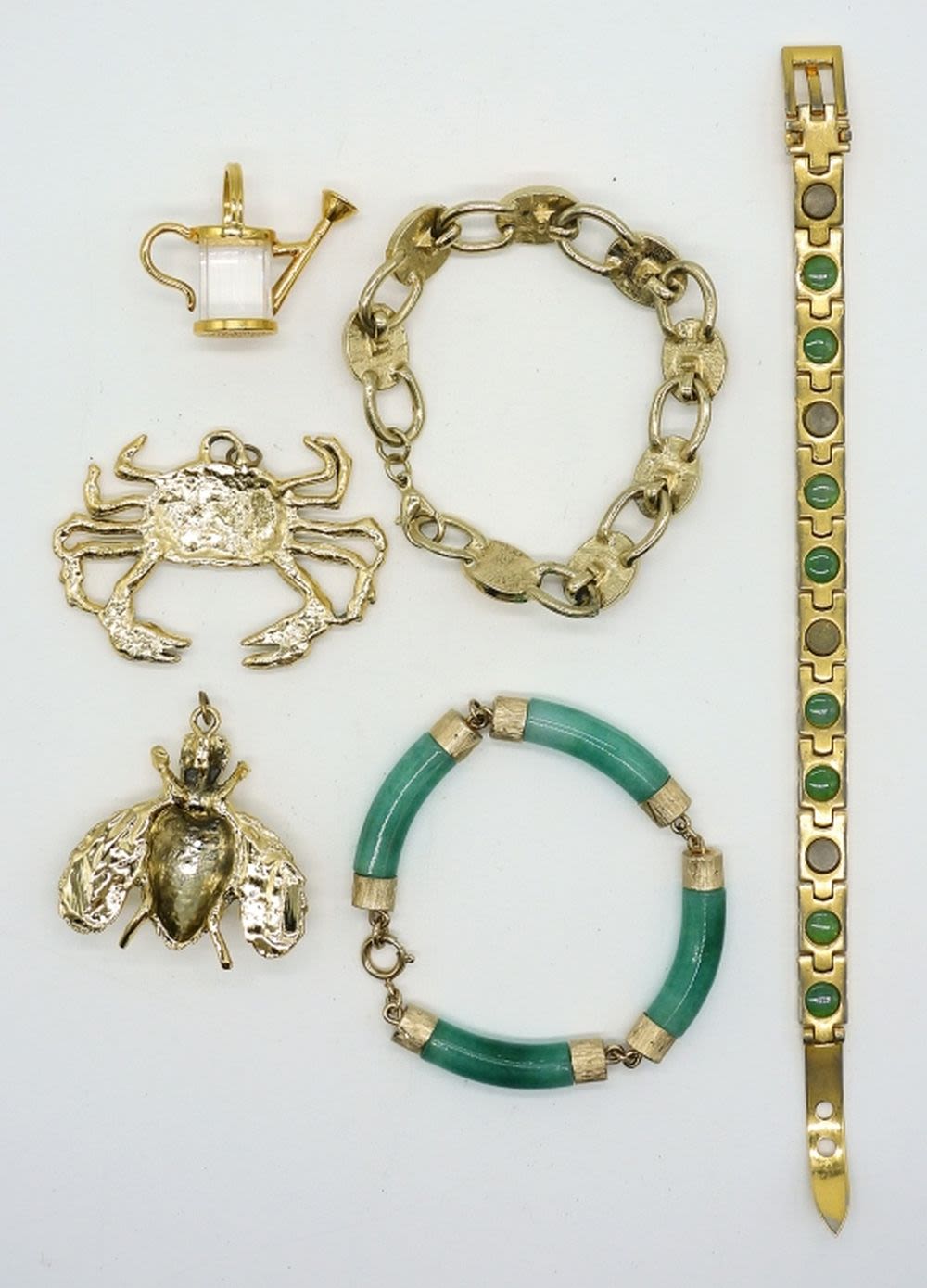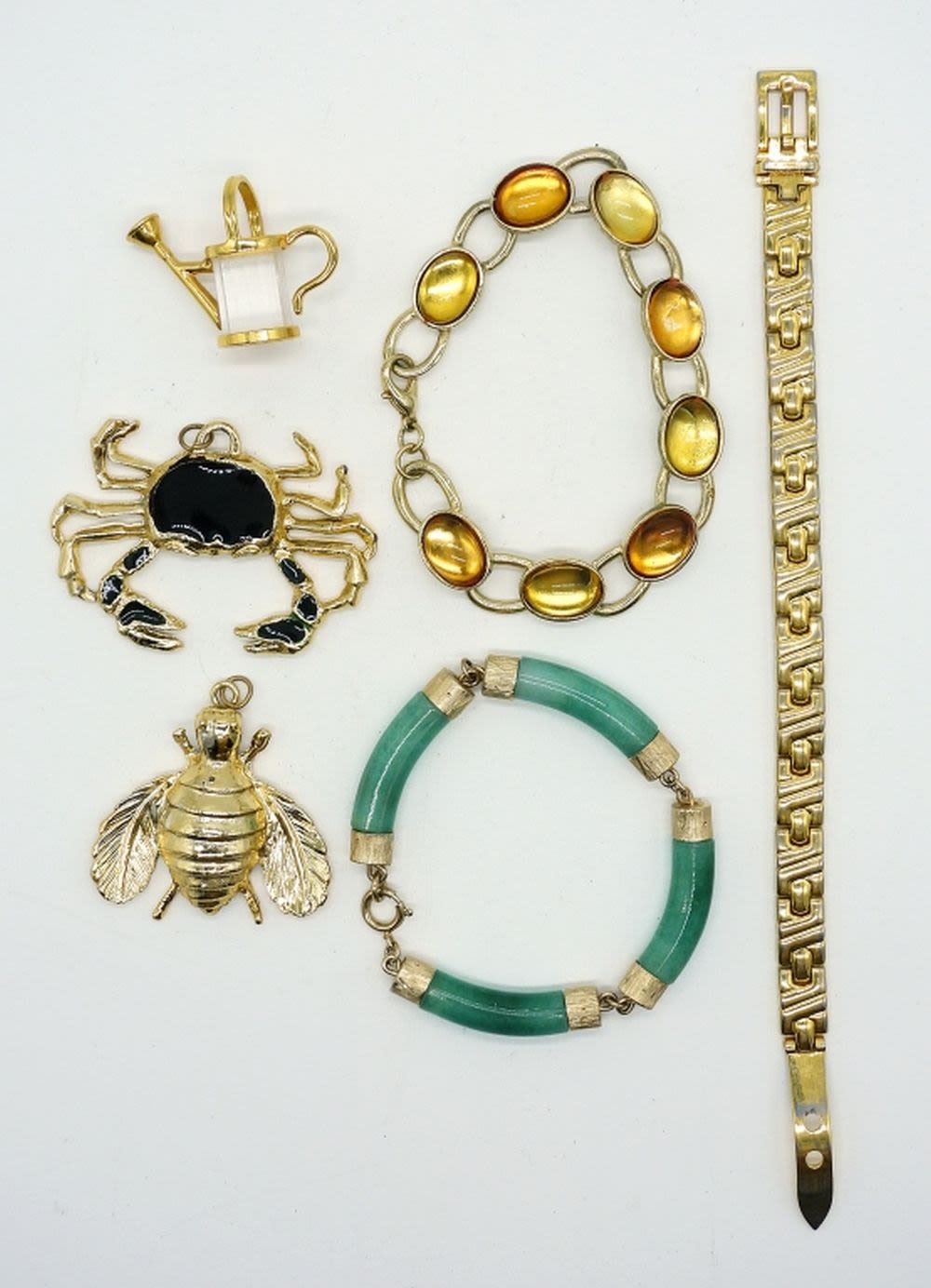 Three 7″ clasp bracelets, three pendants.
