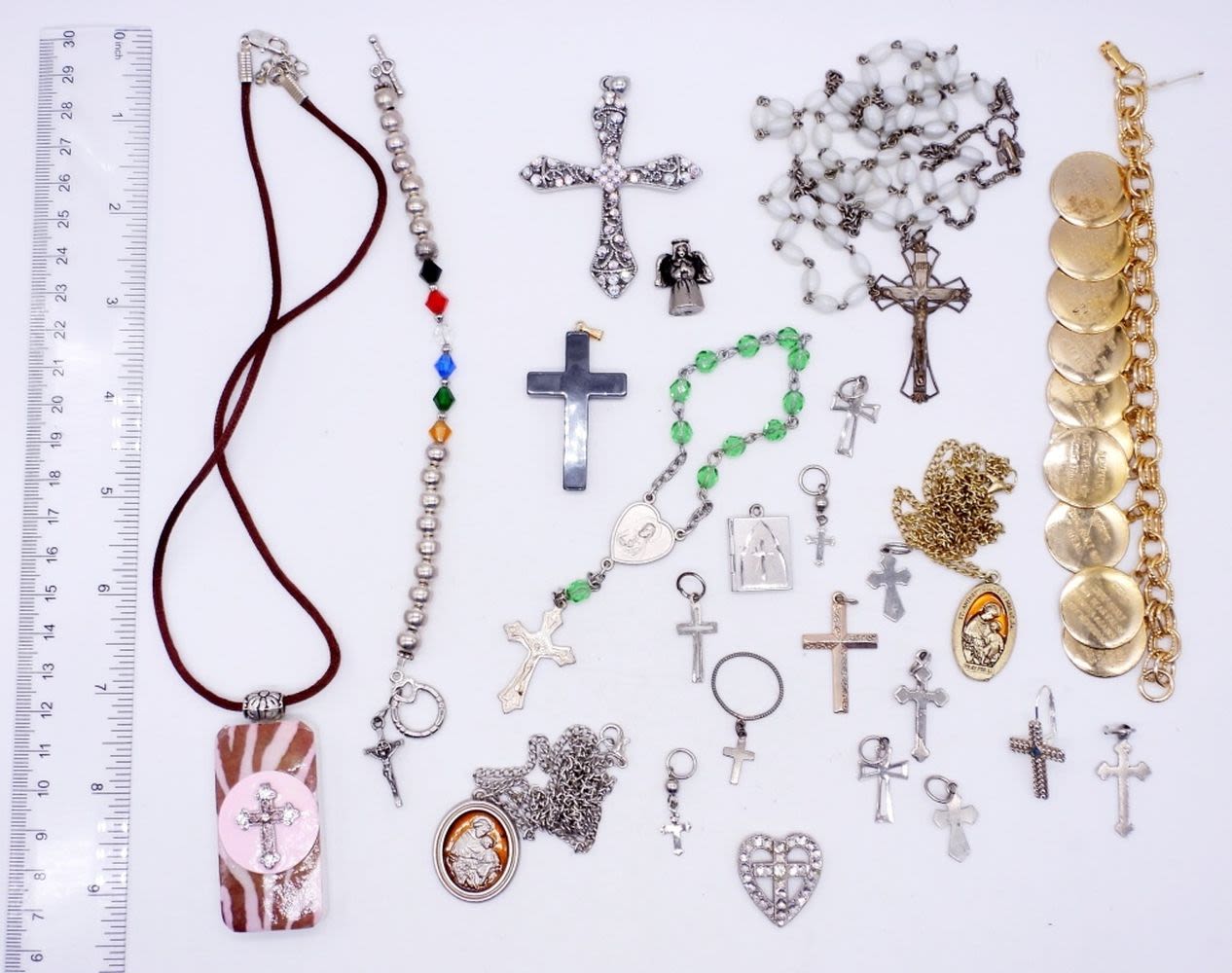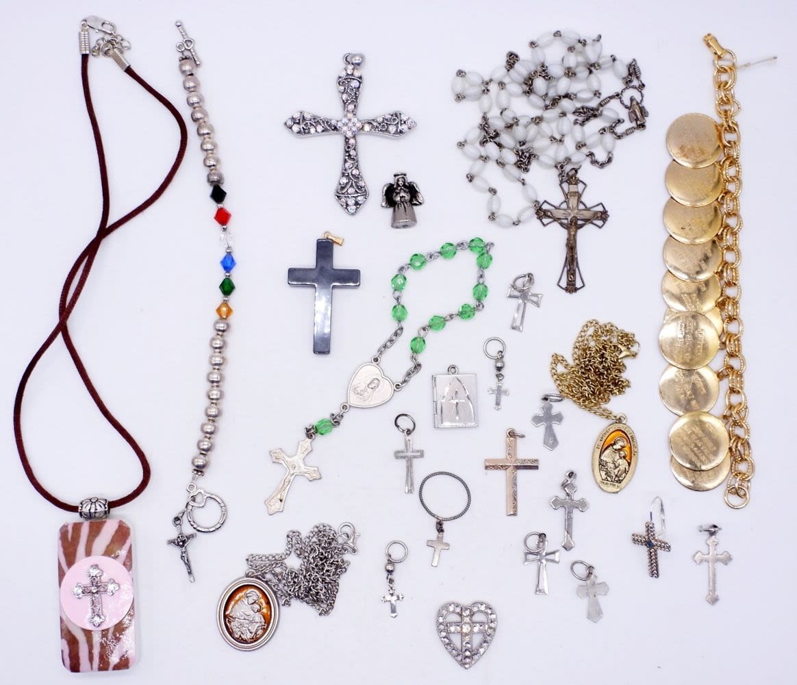 BRACELETS, NECKLACES, PENDANTS, & ROSARY BEADS; SILVER & GOLD TONE, RHINESTONES & NATURAL STONES