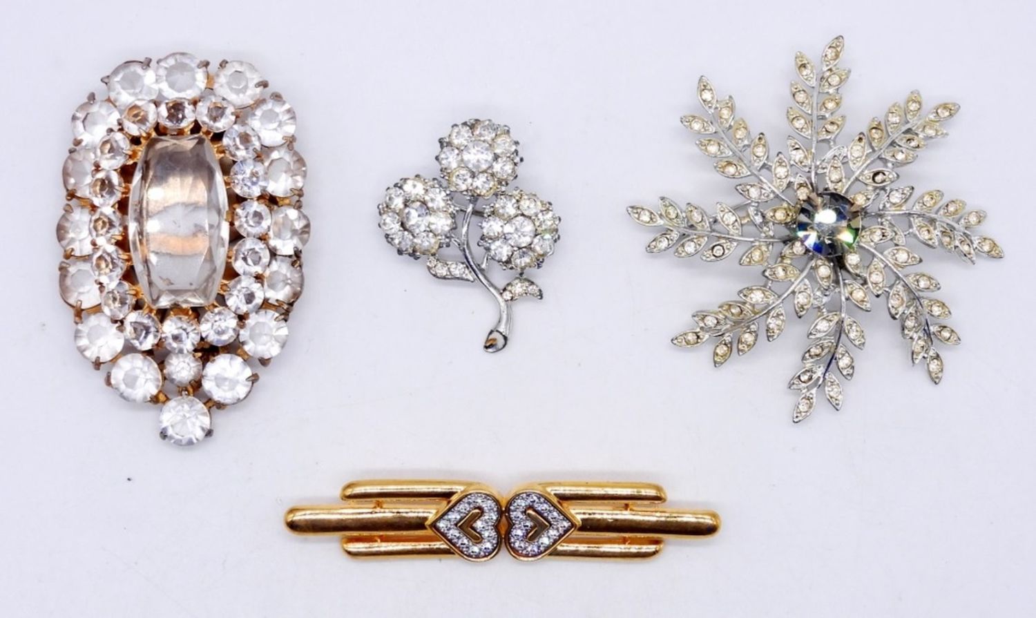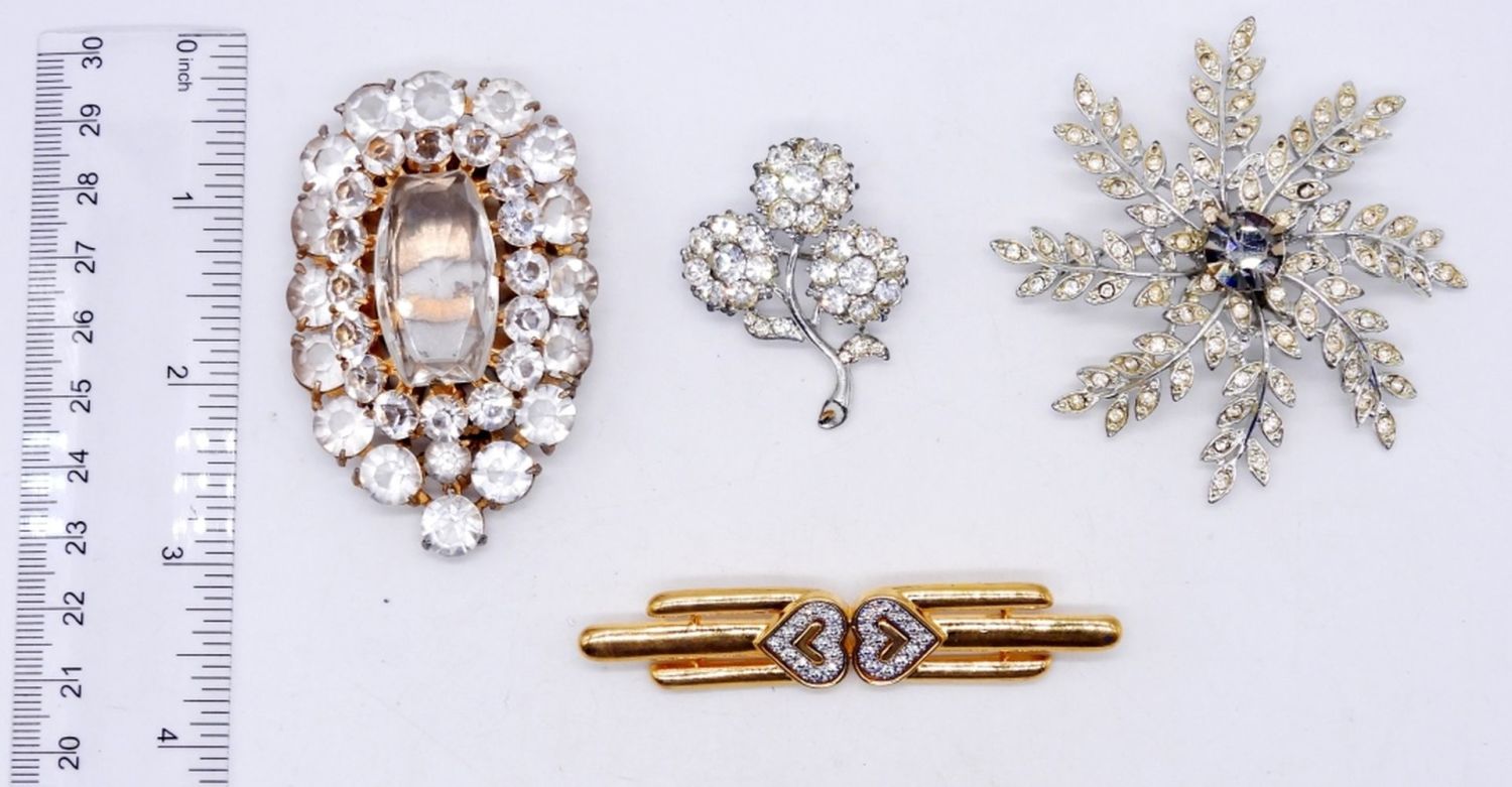 VINTAGE SILVER & GOLD TONE WITH CLEAR RHINESTONES; FLOWERS, HEARTS & MORE