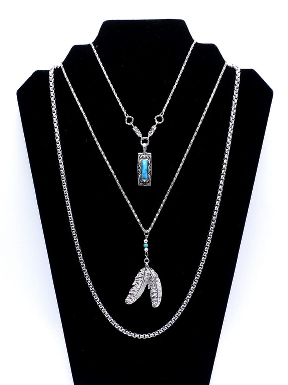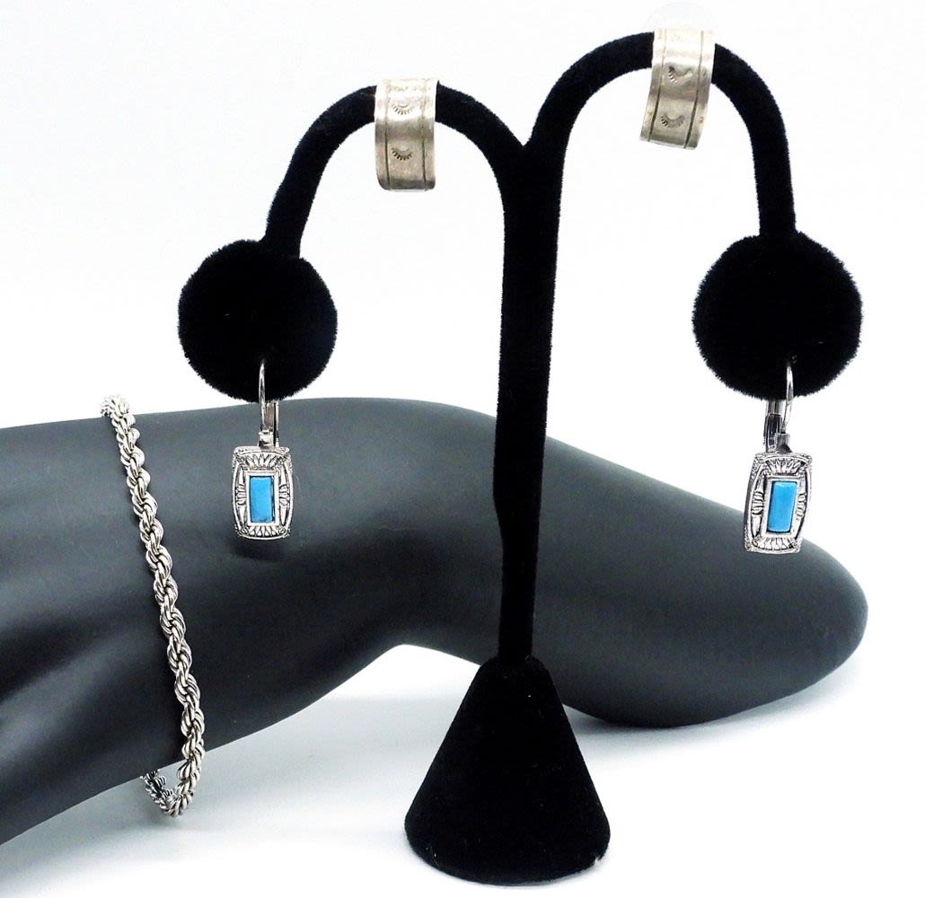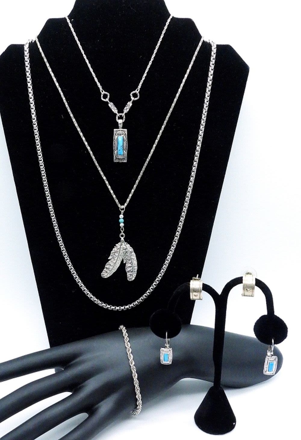 Two pendant necklaces both 18″, chain necklace 25″, plus earrings