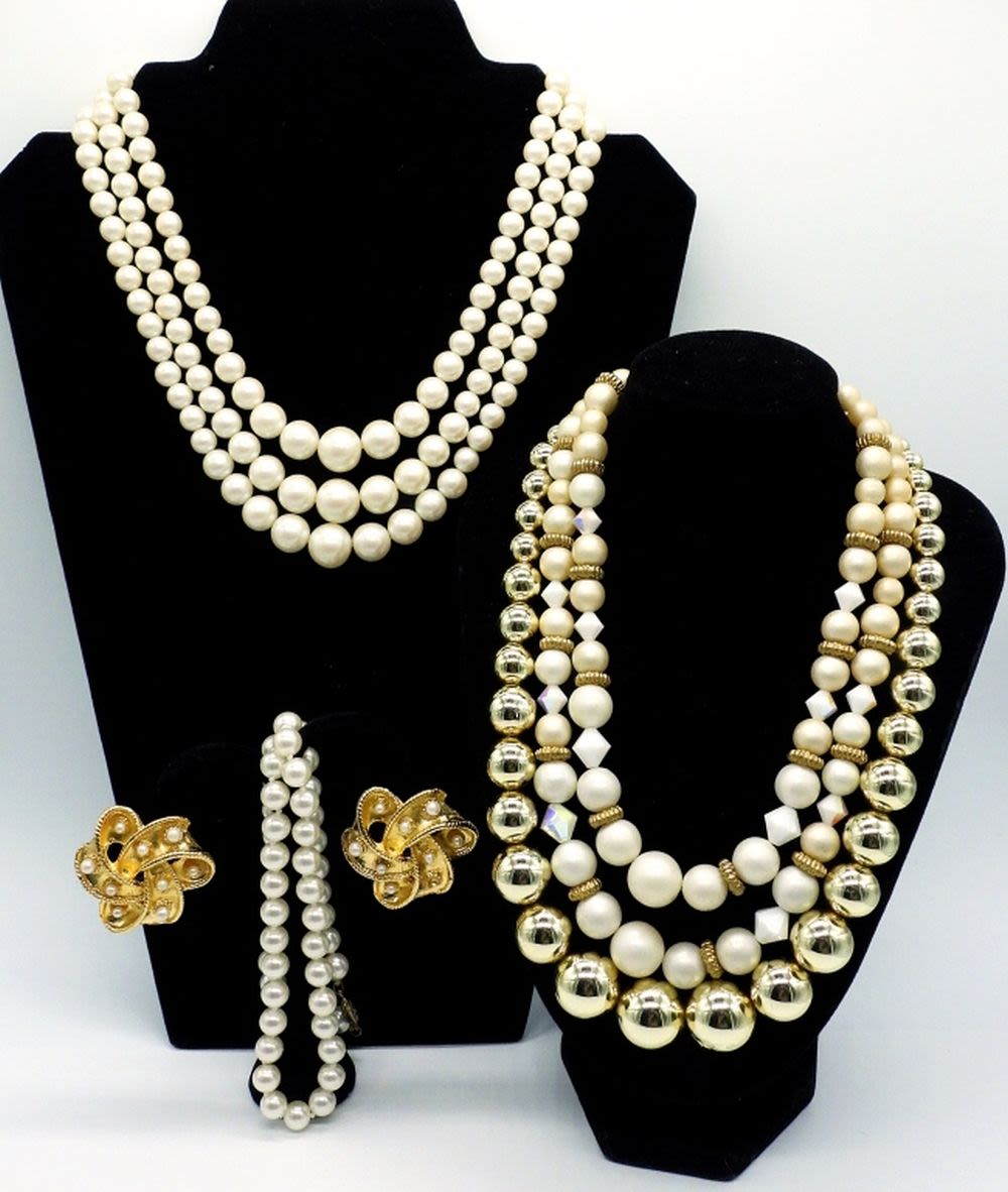 18″ 16″ plus one pair MUSI gold tone clip on earrings