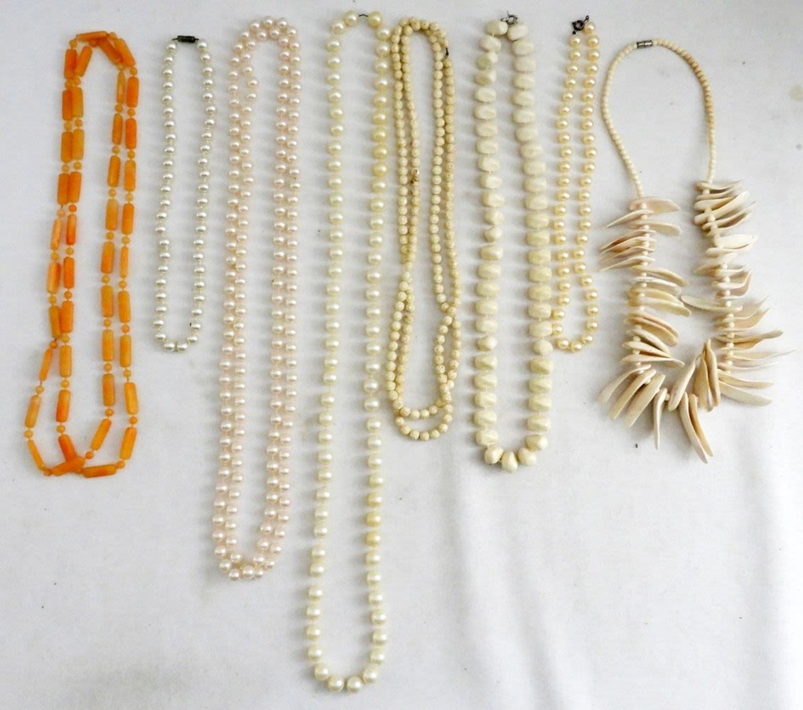 FAUX PEARLS, SHELLS & HANDCRAFTED BEADS – LENGTHS VARY 18″-58″