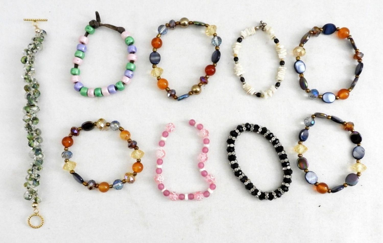 INCLUDING SHELLS, GLASS BEADS, RHINESTONES; STRETCHY STYLE, LEATHER BAND & MORE