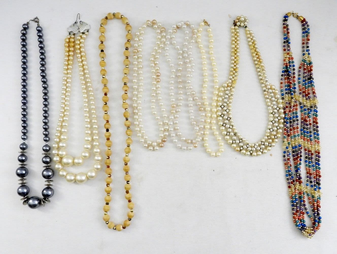 (8) VINTAGE FAUX PEARL BEADED NECKLACES