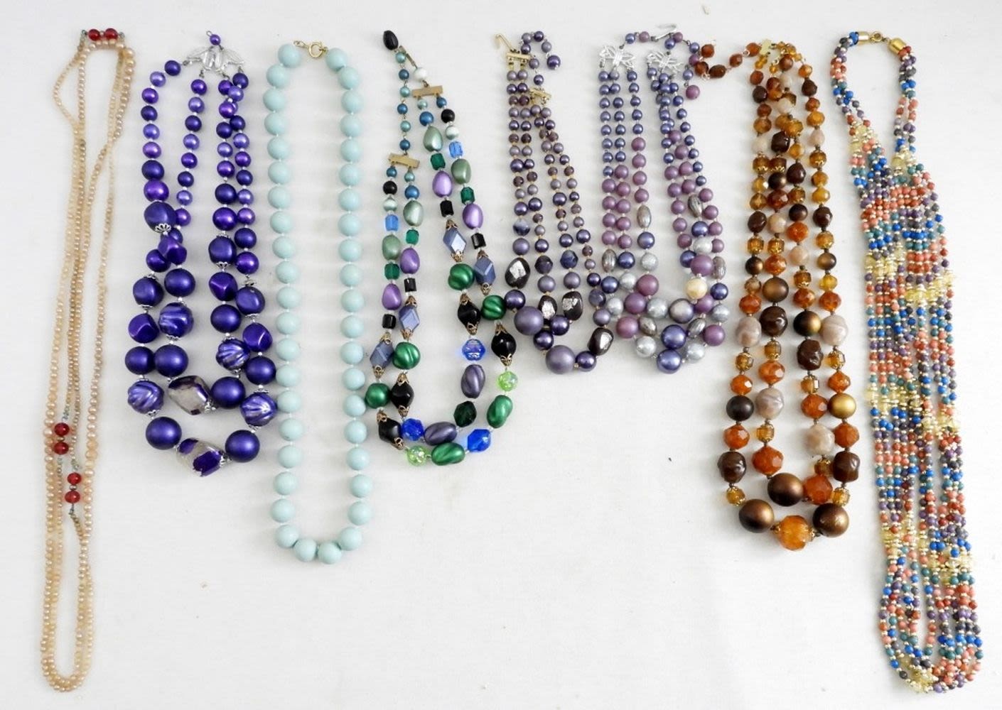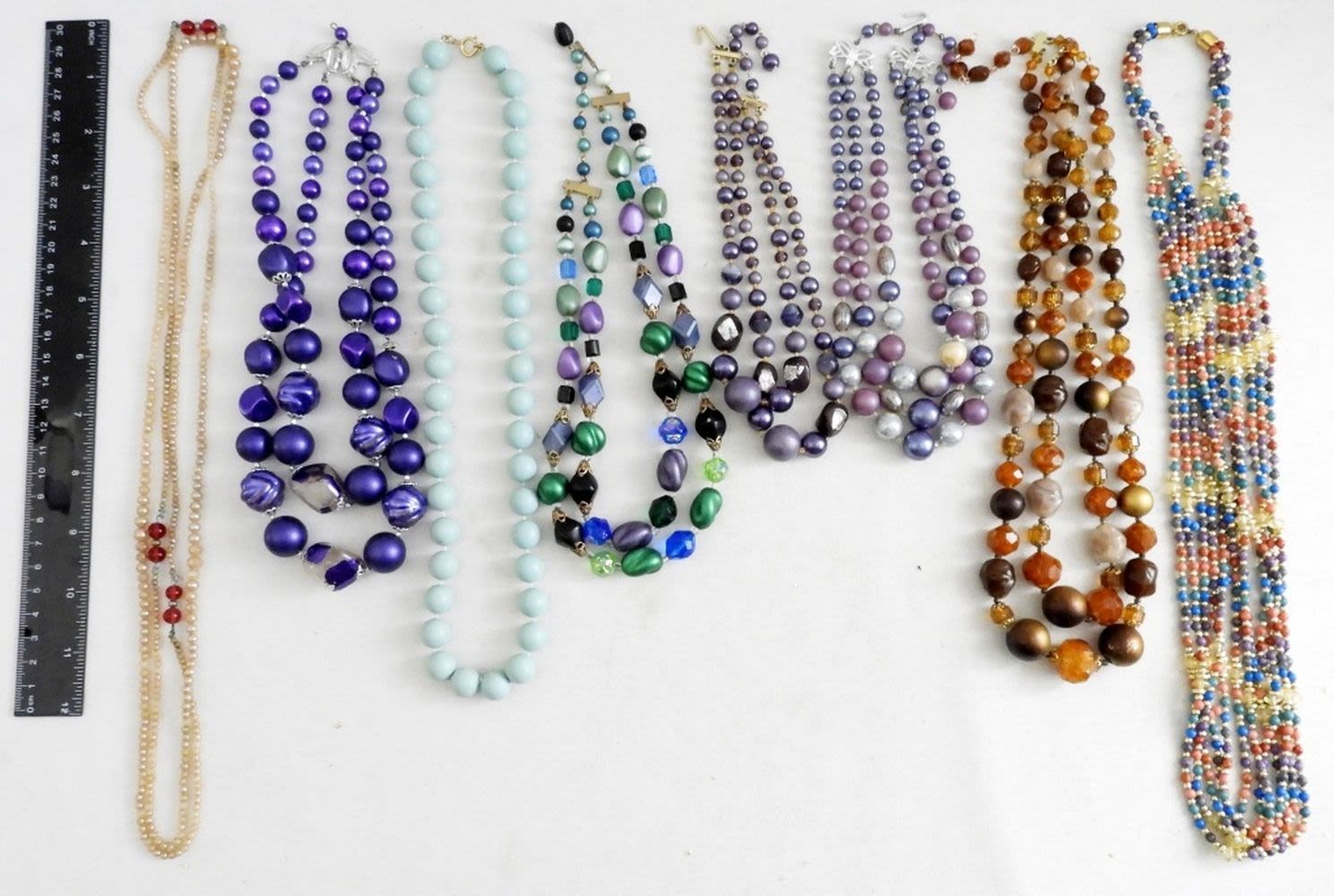 MULTI-STRAND NECKLACES WITH LARGE & SMALL MULTI COLORED NATURAL STONES – LENGTHS VARY 16″-56″