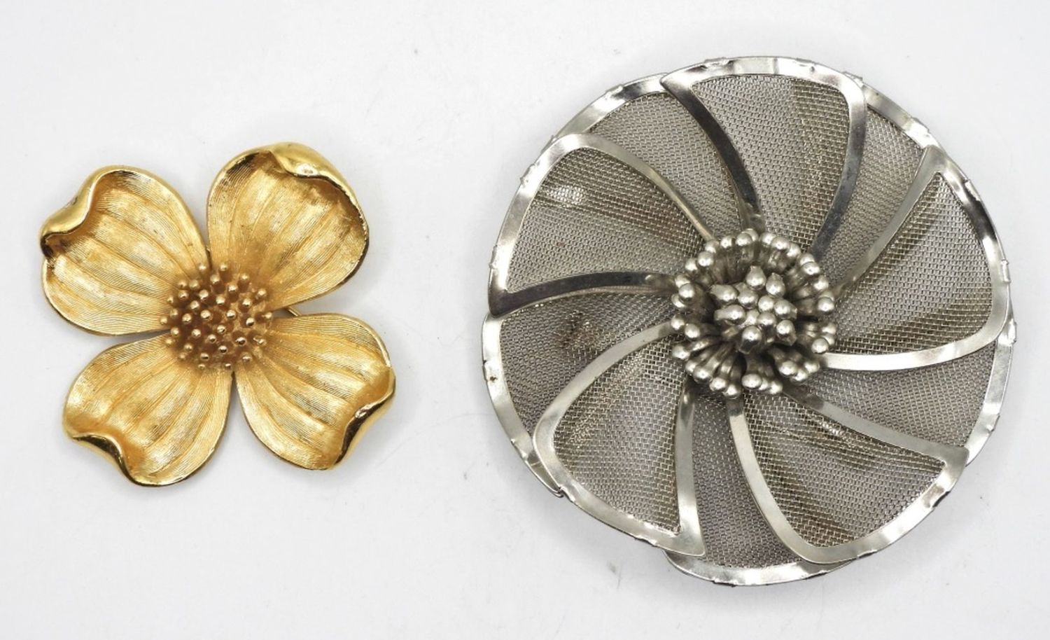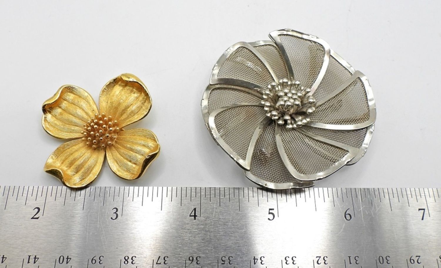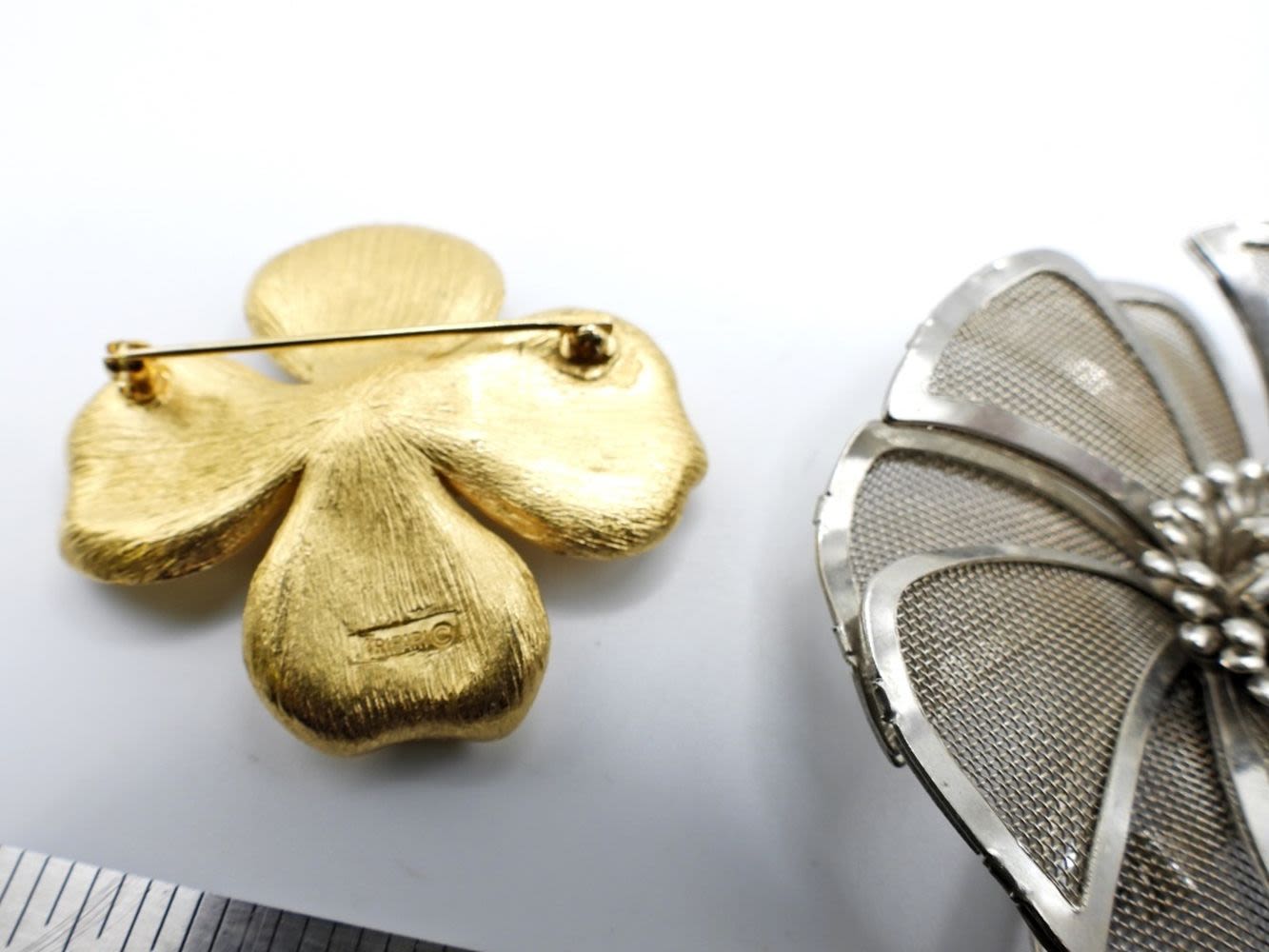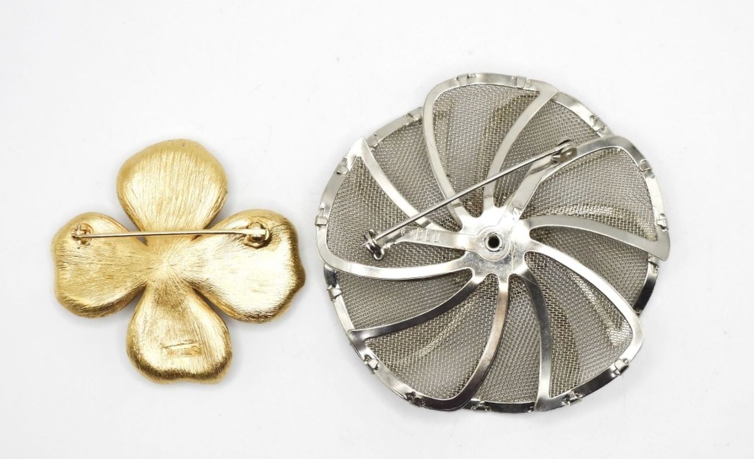 SILVER TONE (BED) STAMPED FLORAL PIN 2 1/2″