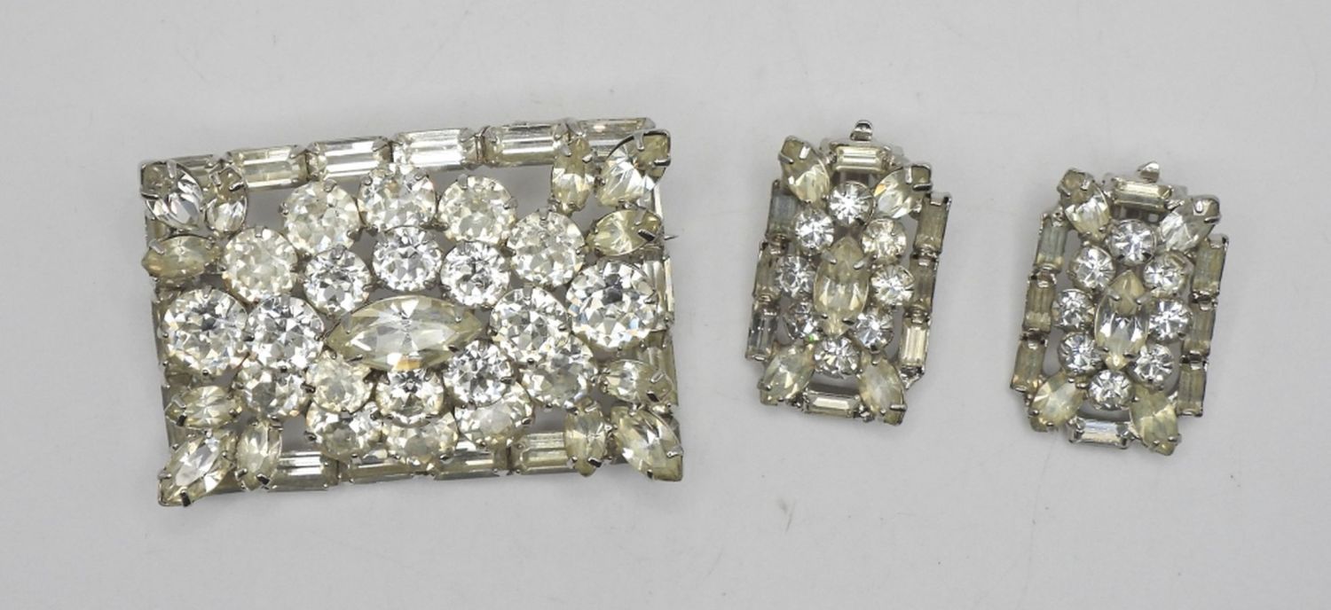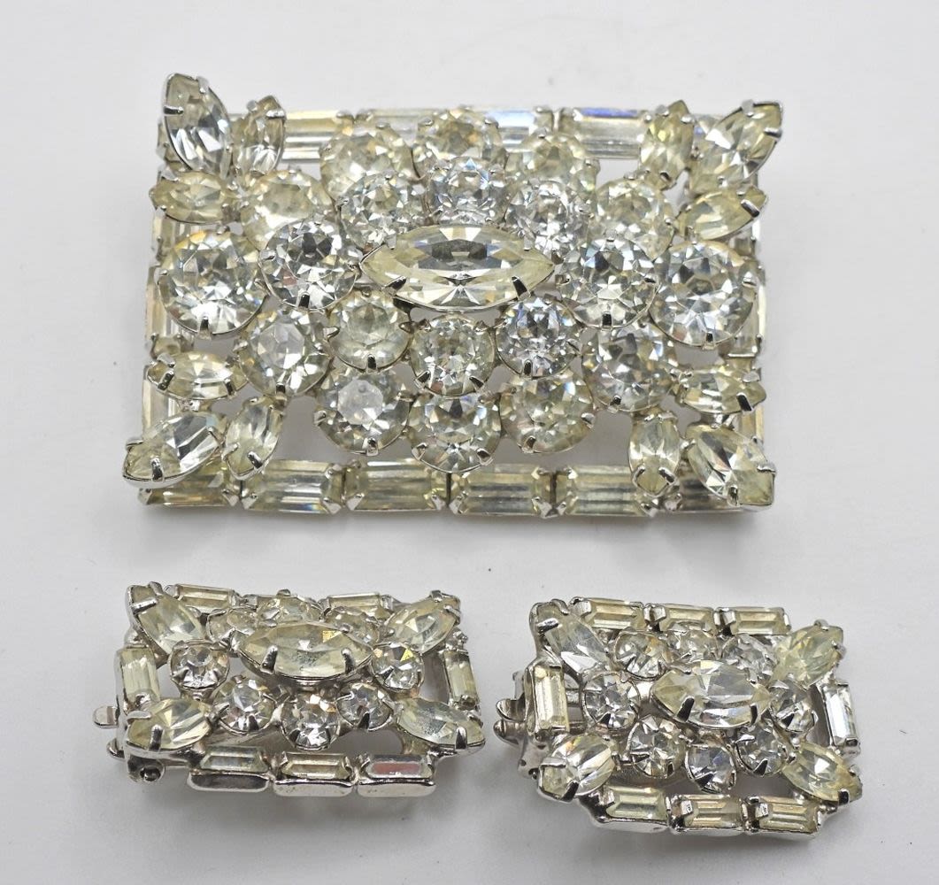 2 x 1 1/4″ RECTANGLE BROOCH & CLIP-ON MATCHING EARRINGS