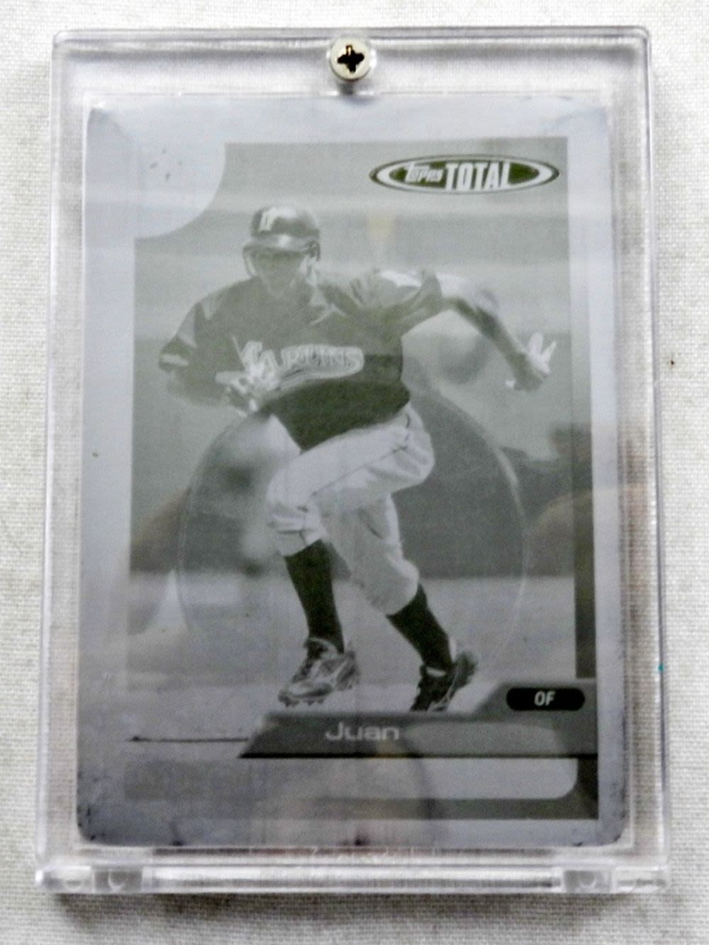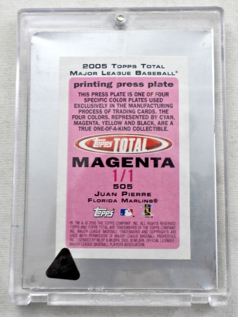 2005 TOPPS TOTAL PRINTING PRESS PLATE MAGENTA CARD #1/1, JUAN PIERRE; IN PLASTIC CASE