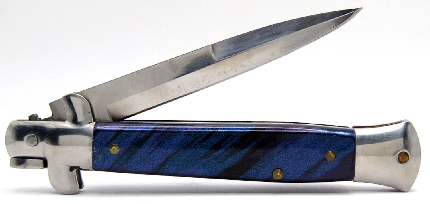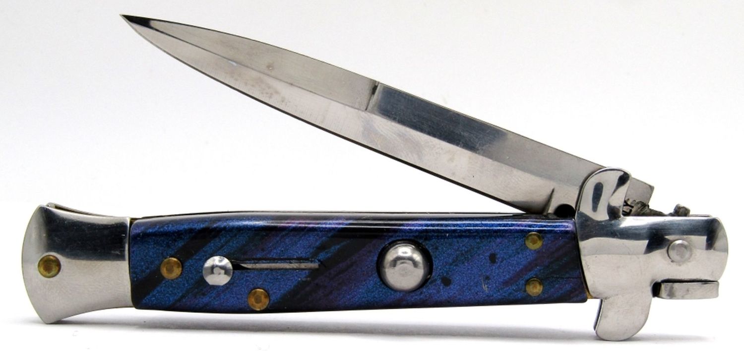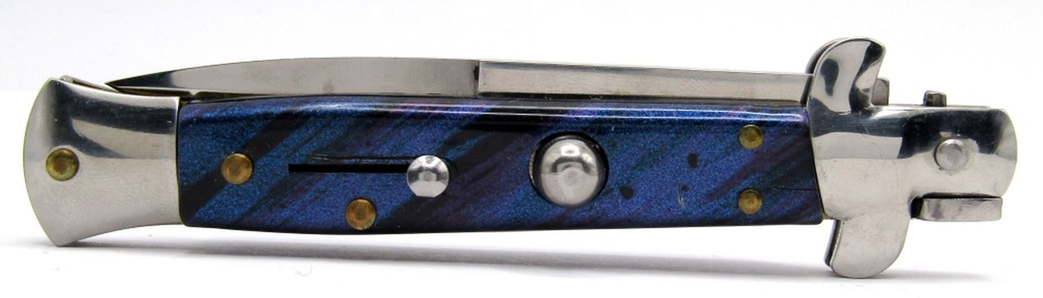 4″ Blade, 9″ Overall; Blue/Purple Swirl Handle Design; Like New in Box!