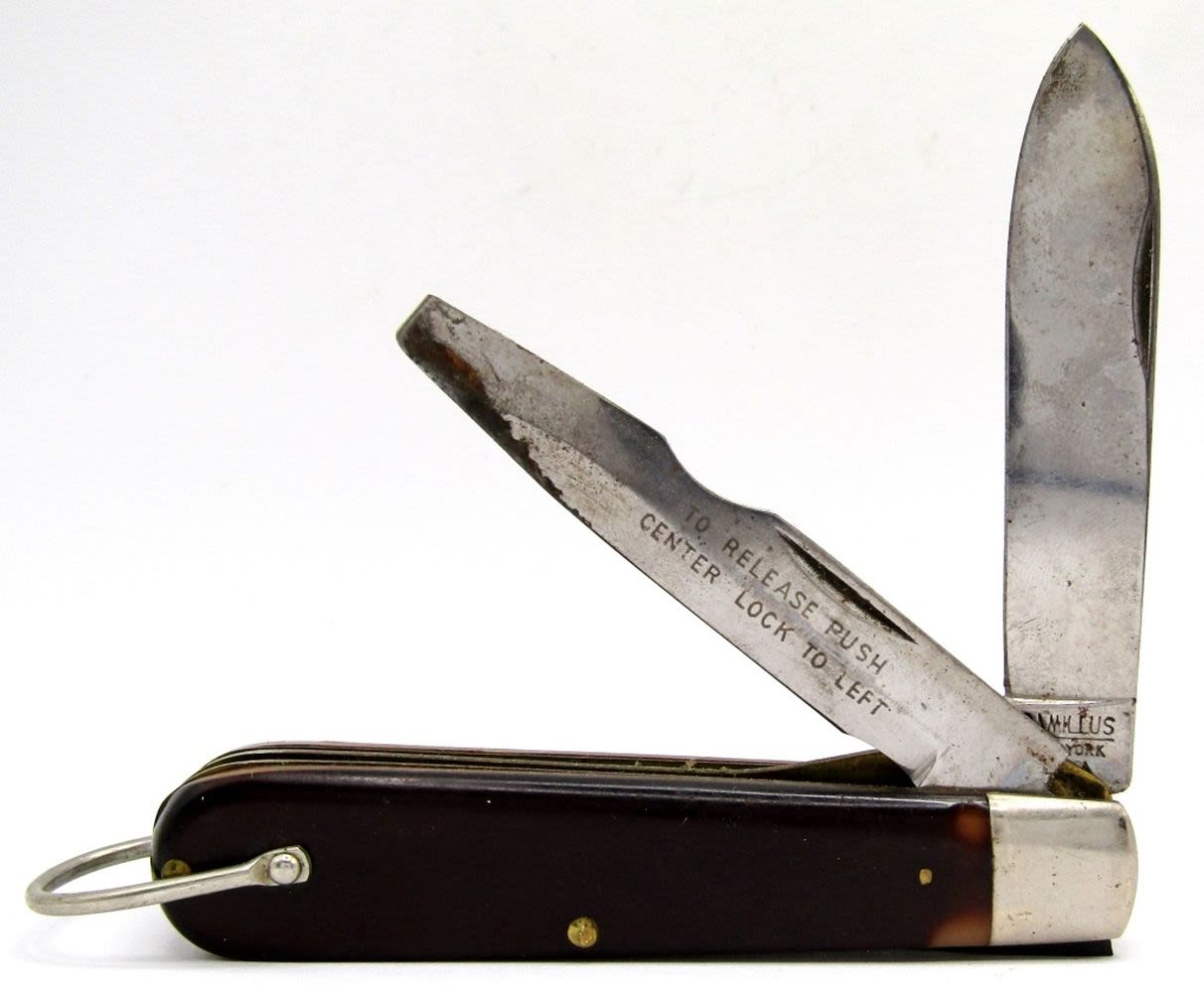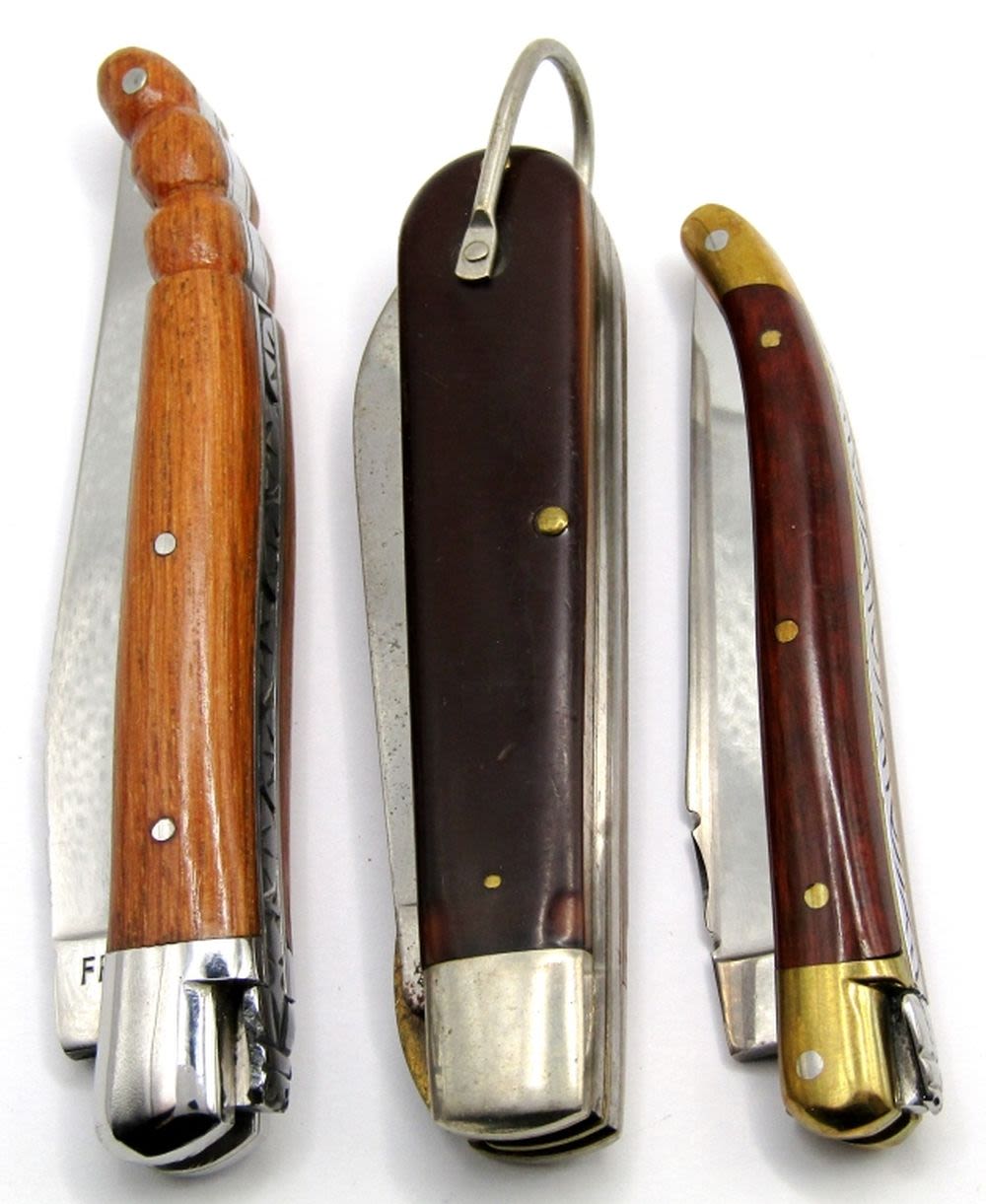 2-Blade Camillus NY #27 Electrician’s Knife, Single Blade Laguiole de l’Artisan12c27 Sandvik France, Single Blade Laguiole en Aubrac 12C27 France; Like New/Used Conditions.