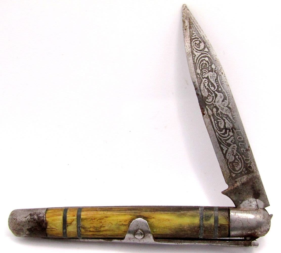 Single Blade Laguiole Origine Garantie France, Single Blade Okapi Carbon Steel, Single Blade Toledo; Used.