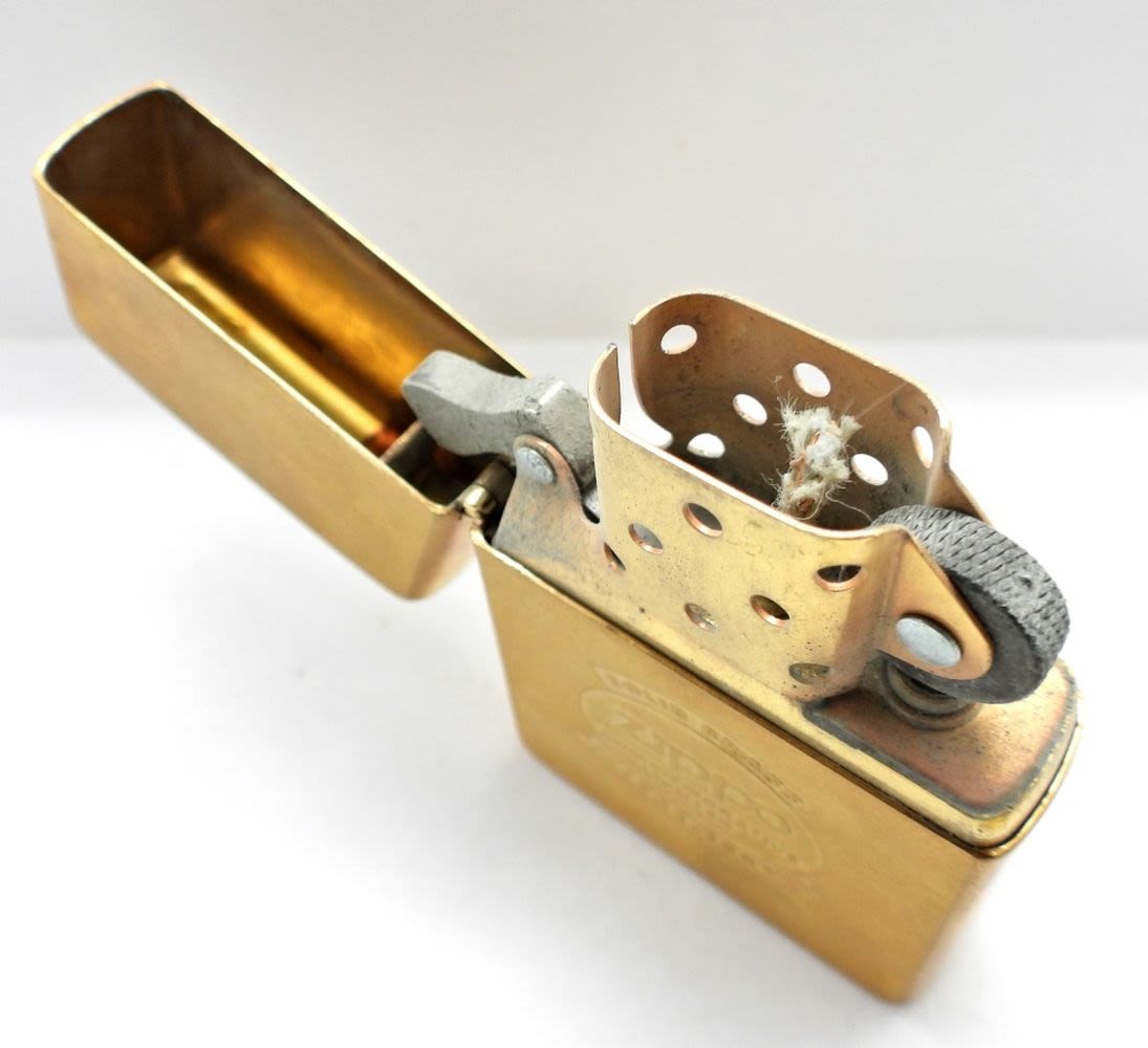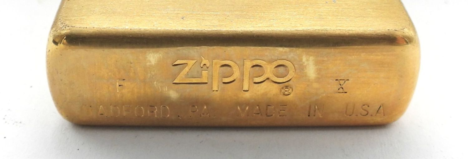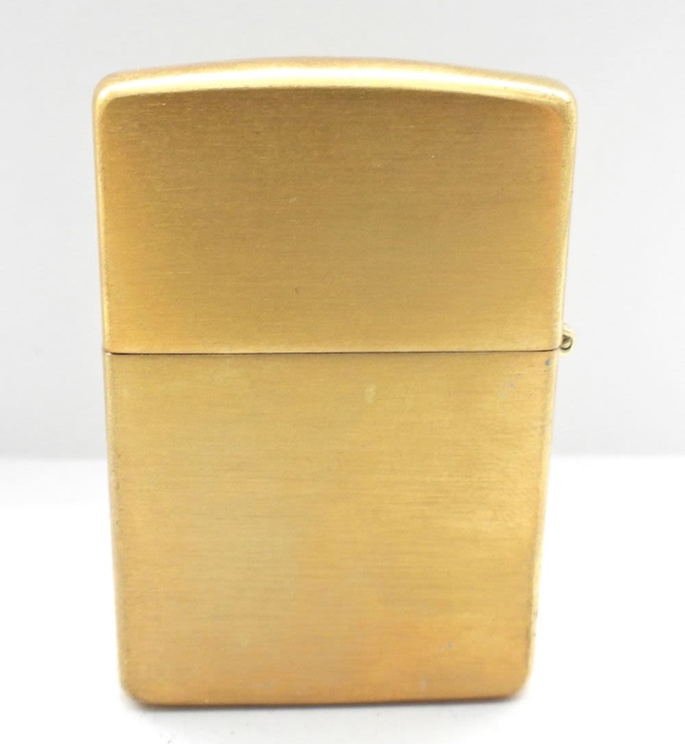 UNFIRED, IN-BOX (HINGE IS BROKEN), ENGRAVED LOGO ” SOLID BRASS ZIPPO COMMEMORATIVE LIGHTER 1932-1982″ ON THE FRONT