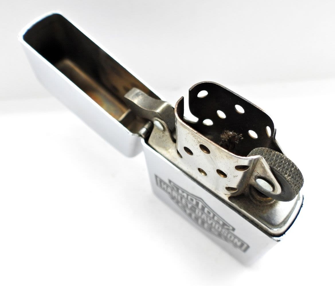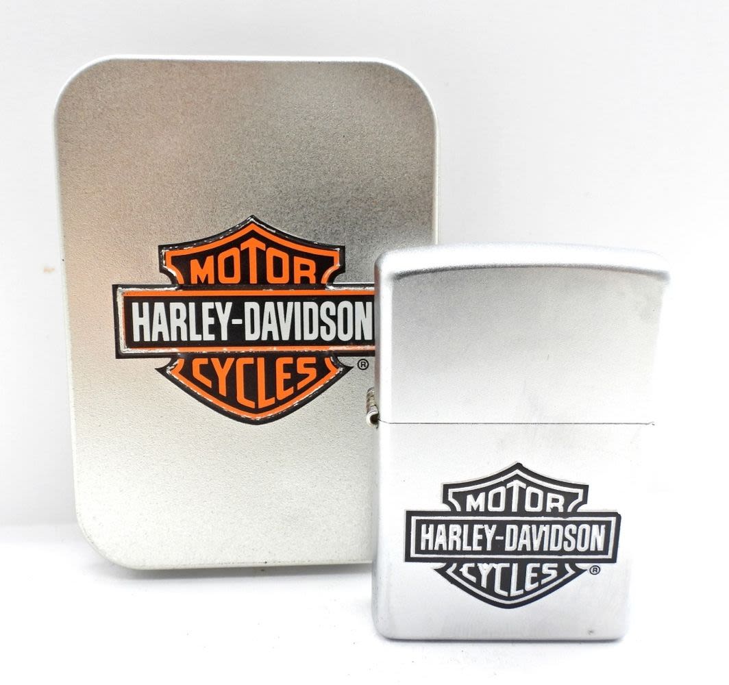 USED CONDITION, HARLEY-DAVIDSON MOTOR CYCLES LOGO ON THE FRONT, IN THE TIN BOX WITH LOGO AS WELL