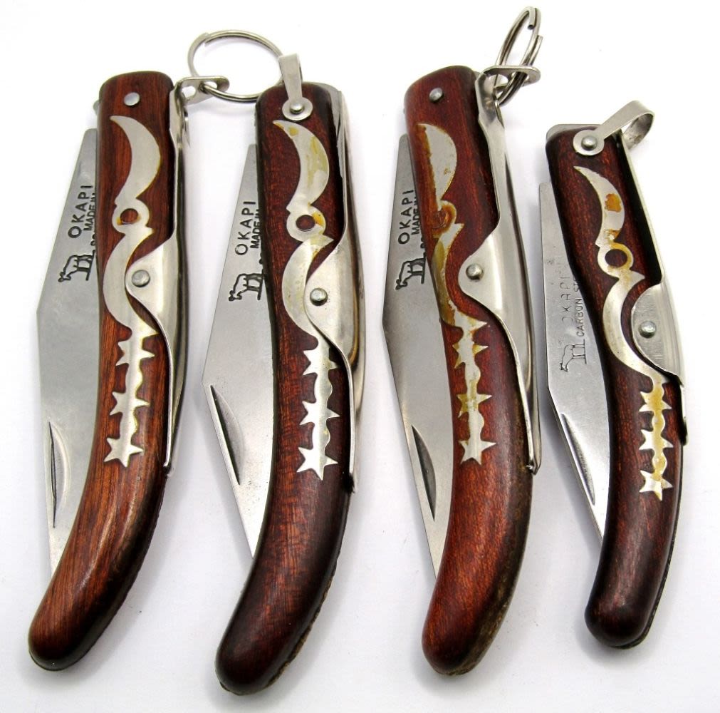 All Single Blade, All Marked Okapi, (3) Marked “Made in South Africa”, (1) Marked “Carbon Steel”; Used Conditions.